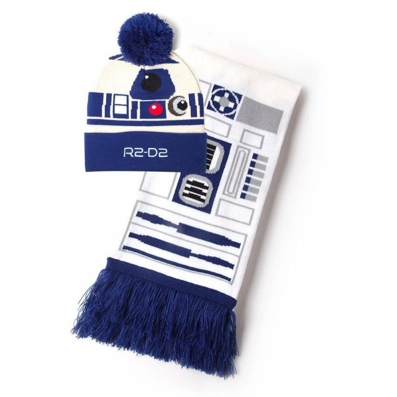 Cet amusant ensemble cadeau inspiré de R2-D2 vous tiendra chaud pendant les mois d'hiver. Un bonnet classique avec un grand pompon et une écharpe assortie avec une longue frange.Composition : Bonnet : 95% Acrylique - 5% Elastane - Echarpe : 95% Acrylique - 5% Elasthanne