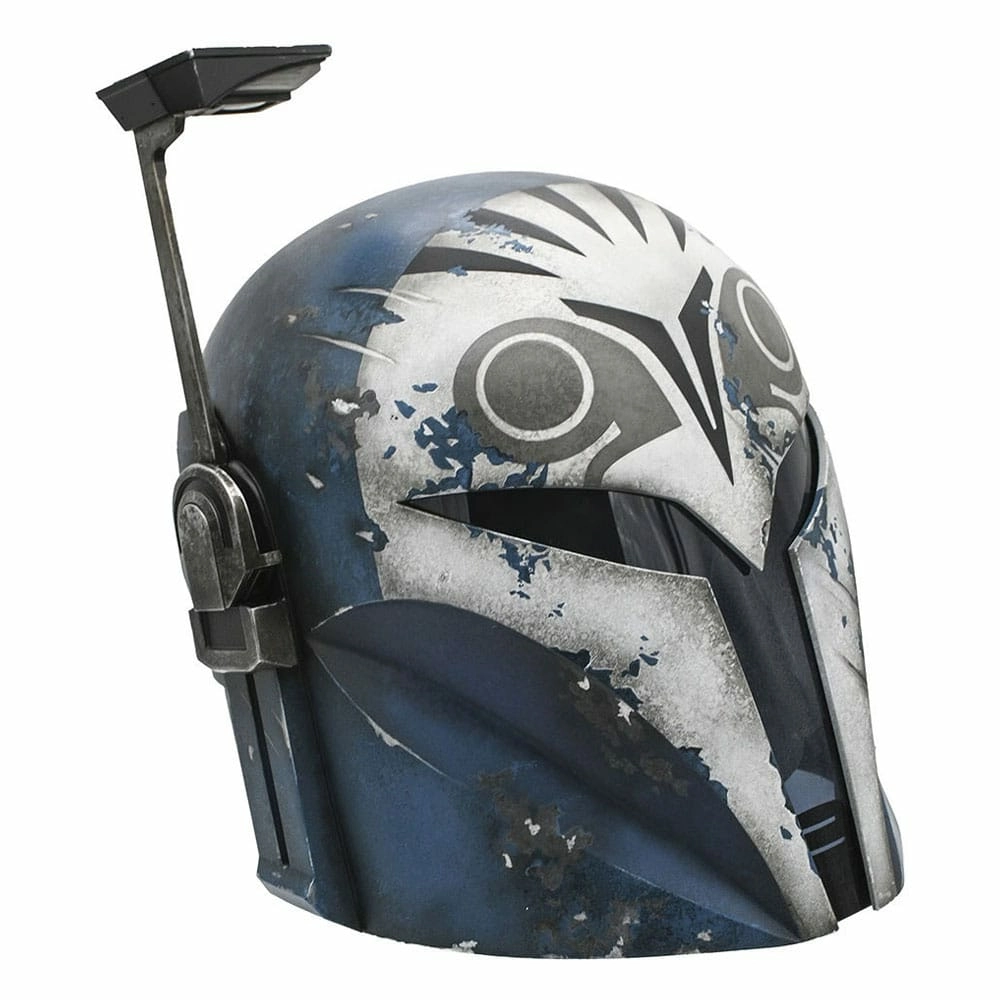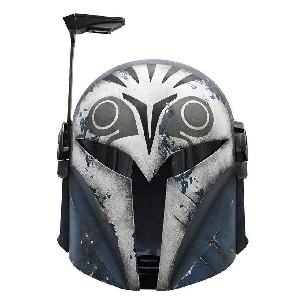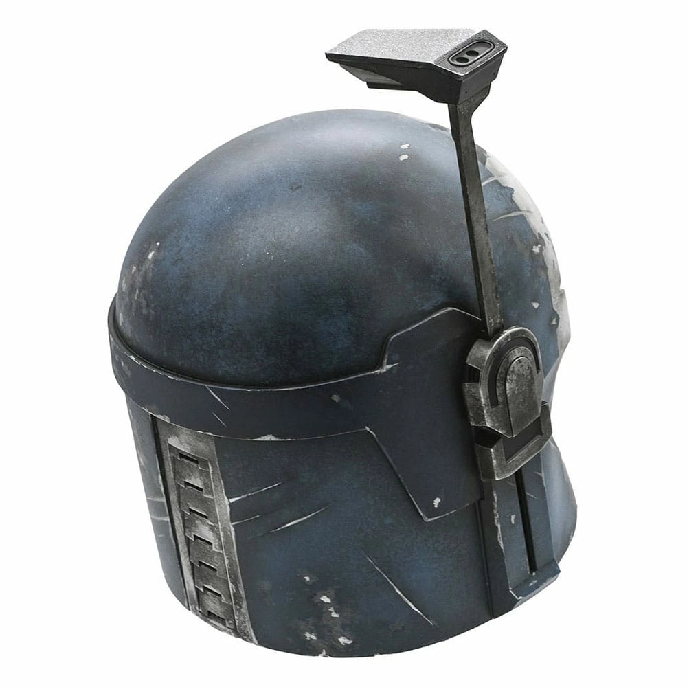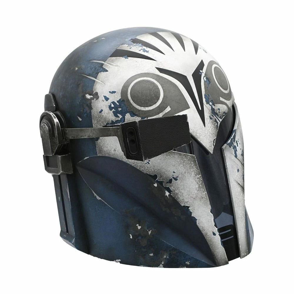 Bo-Katan Kryze's Mandalorian Helmet was the Mandalorian helmet worn by the Mandalorian Bo-Katan Kryze along with her armor. According to Kryze, the armor had been in her family for three generations. The Nite Owl helmet was painted blue, grey, and white, which matched her armor. Before the Siege of Mandalore, Kryze's helmet had been repainted with new markings. Features: - As seen in the Disney+ Star Wars live-action series, The Mandalorian - Worldwide Edition Size: 500 - Master patterns and paint master made by the original prop maker. - Limited edition full Scale 1:1 Prop Replica - Fiberglass construction - Screen accurate paint and pattern from the original prop maker. - Metal support range finder - EFX Dsiplay Base - Metal Numbered Plaque - Prop Story - Certificate of Authenticity