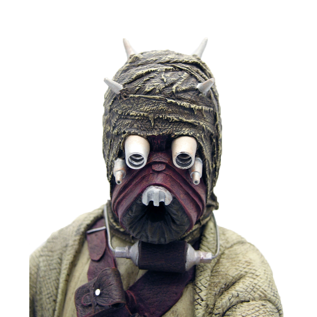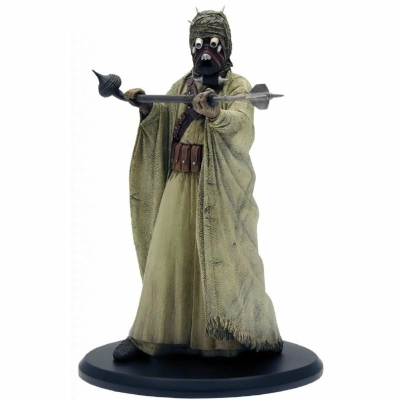 Limitée à 1500 ex.Taille : 38 cmFourni avec : certificat d'authenticitéTiré du film : Un nouvel espoirPlongez dans l'univers Attakus de Star Wars et découvrez les statues de la collection Classic, à l'échelle 1/5ème !Statue en résine de Tusken Raider, tel qu'il apparaît dans l'épisode IV de la saga Star Wars (Un nouvel espoir).Collector numéroté et limité à 1500 exemplaires dans le monde. Sculpté en France et peint à la main. Livré avec son certificat d'authenticité Attakus. Taille : 38 cm.Collection historique de chez Attakus, la collection Classic propose des statues de collection à l'échelle 1/5ème, soit une quarantaine de centimètres pour la majorité des personnages. Elles sont réalisées en résine et peintes à la main.Également appelés Hommes des sables, les Tusken Raiders sont un peuple de nomades parcourant le désert de Tatooine se fondant dans le paysage pour rester invisibles. Très hostiles aux étrangers, Ils sont habillés de grands manteaux, ils se couvrent entièrement pour survivre dans leur rude environnement. Leur tête est entièrement recouverte de bandages, et elle est équipée d'un piège à humidité et d'un filtre respiratoire. Ils sont armés d'un Bâton gaderffi muni d'une lame empoisonnée. Leur première apparition dans l'univers de Star Wars date du premier film, "Un Nouvel espoir".