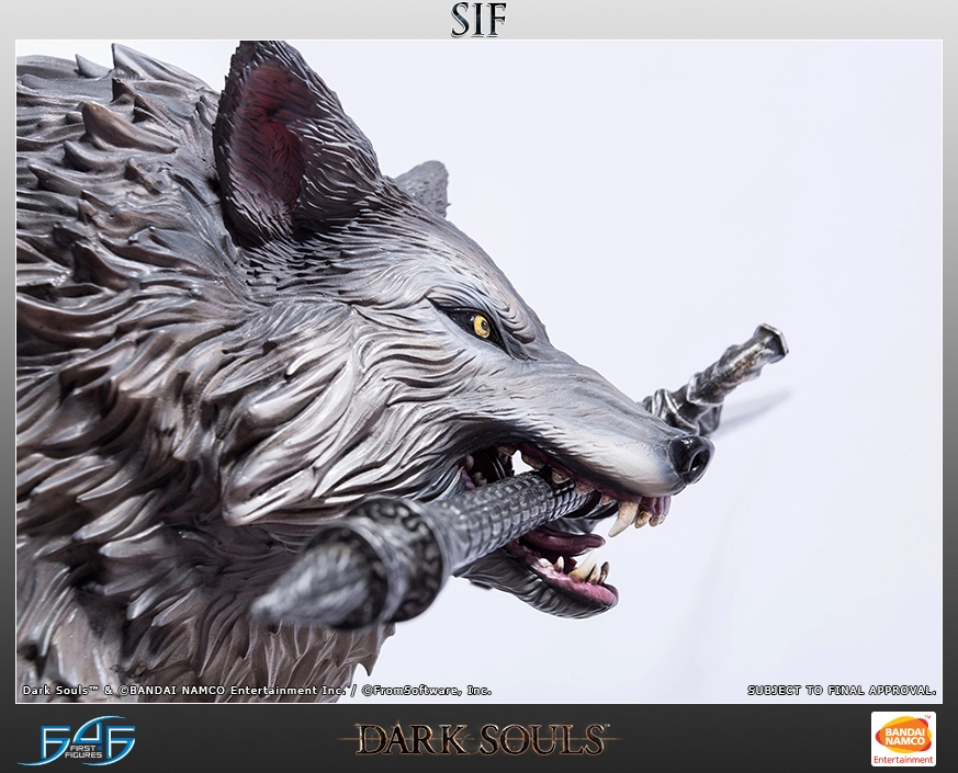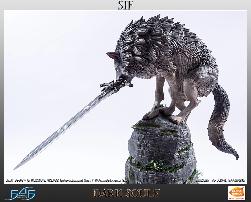 Superbe statue de Sif le grand Loup Gris en résine de qualité finie et peinte à la main sous licence officielle, inspirée du jeu vidéo "Dark Souls".