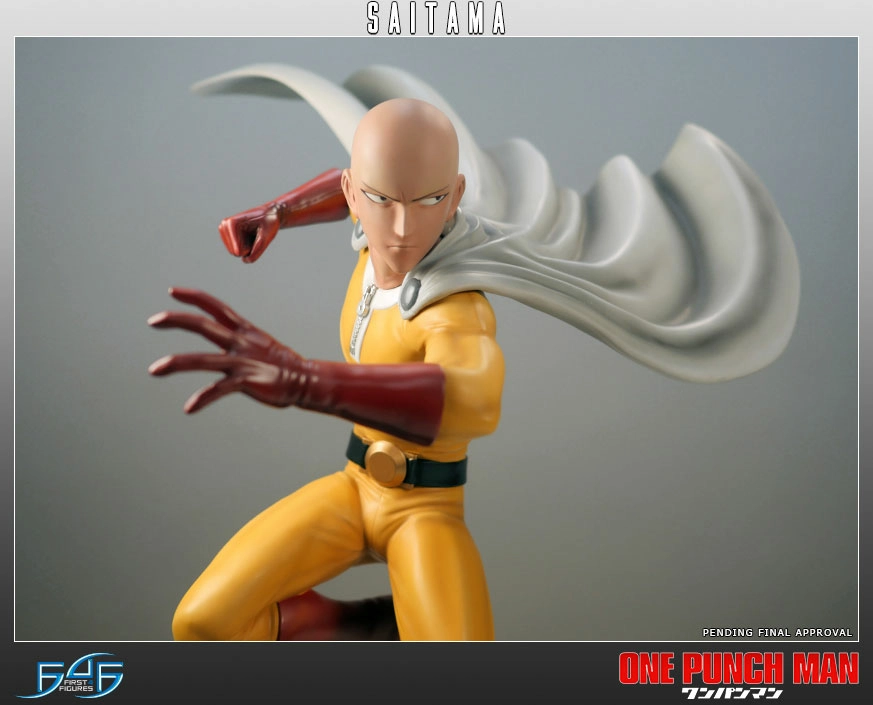 Superbe statue de Saitama en résine de qualité finie et peinte à la main sous licence officielle, inspirée du Manga "One Punch-Man".