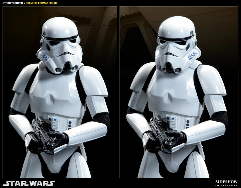 Statue Sideshow Star Wars Stormtrooper en résine à l´échelle 1/4 ´Premium Format´, dimensions env. 50 x 29 x 29 cm sur socle décor. Modèle fini et peint à la main.