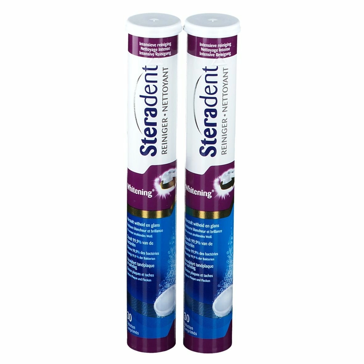 Pour obtenir les meilleurs résultats de nettoyage, nous recommandons d'utiliser Steradent Whitening deux fois par jour.
