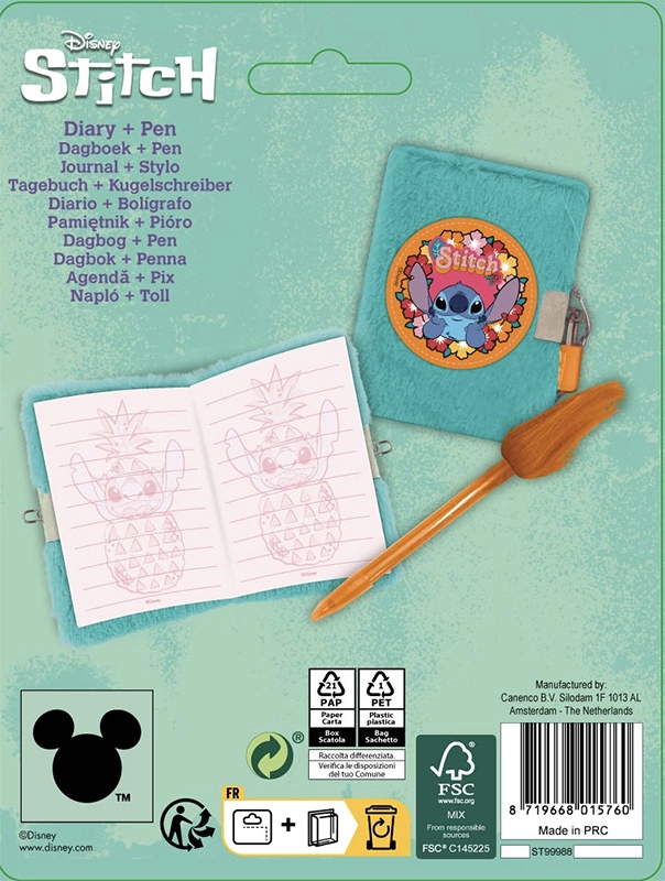 Stitch - journal intime peluche + stylo-bille
