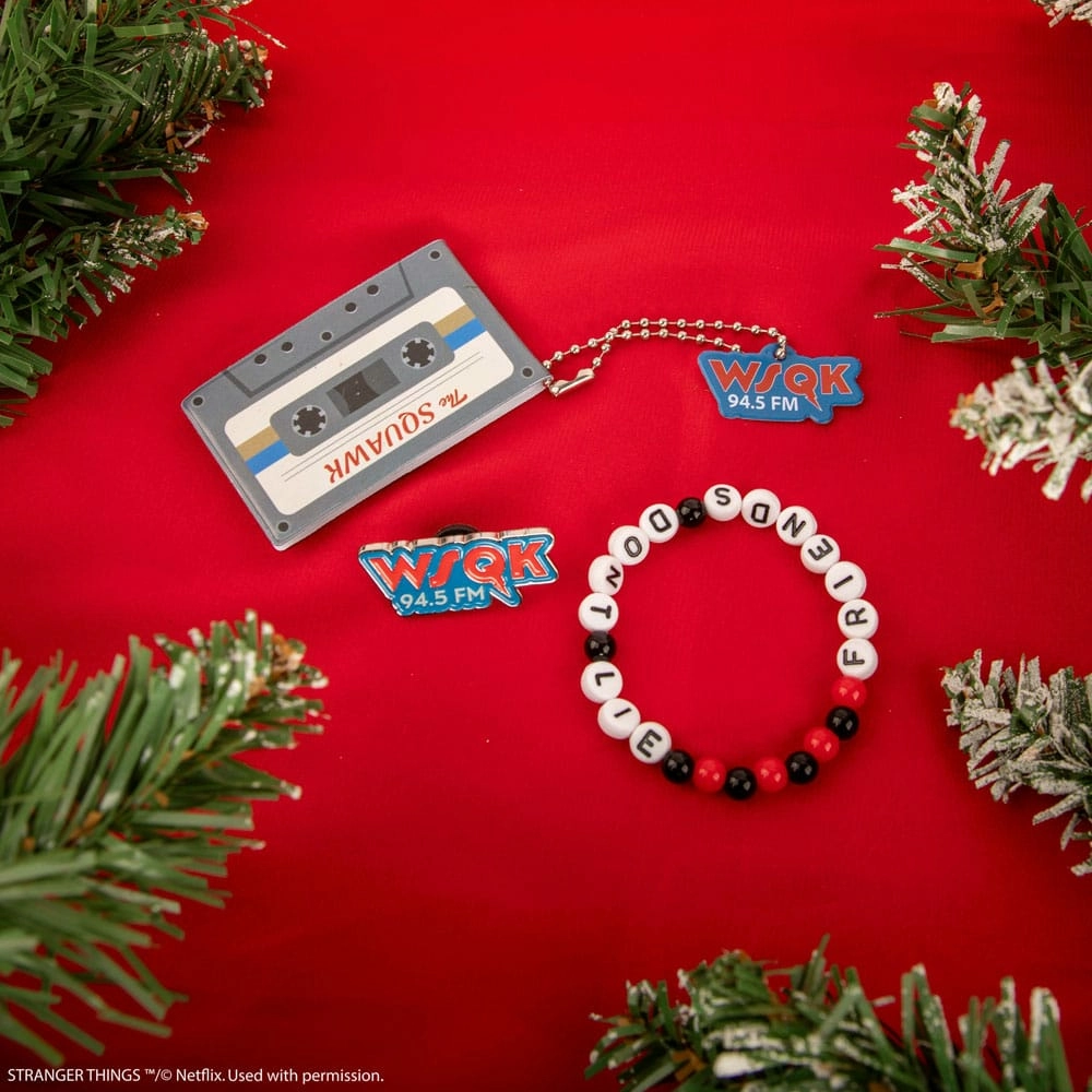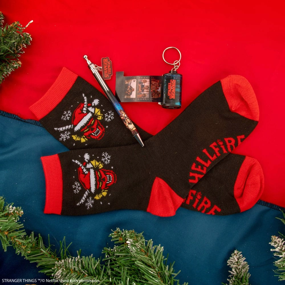 Calendrier de l'Avent sous licence officielle avec 24 articles cadeaux sur le thème Stranger Things (Collier, porte-clés, figurine en acrylique, sac à chaussures, sac à provisions, boussole, chaussettes, gomé, porte-stylo pliable, paille en métal avec accessoire, bracelet d'amitié, minuscule squishy, stylo avec épingle, marque-page en acrylique, ornement en bois, bloc-notes squishy, épingle, aimant, set de 10 autocollants avec découpe, porte-clés, bloc-notes, autocollant lenticulaire, breloque de téléphone, chiffon en microfibres)