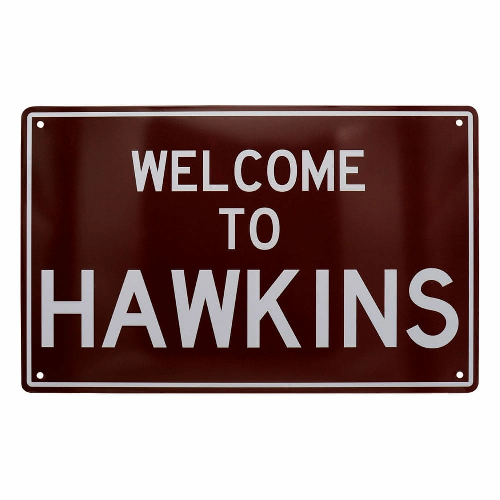 - Panneau métal sous licence officielle-Taille: 28 x 18 cmContient :1 x Hawkins High School1 x Hellfire Club1 x Welcome to Hawkins town