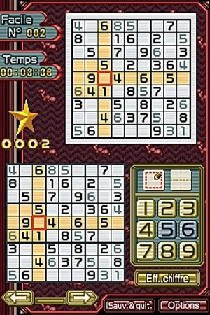 Devenez champion de sudoku avec Sudoku Master sur DS. Le jeu de réflexion s'invite chez nous avec pas moins de 400 grilles originales pour des heures et des heures de réflexion. Jouez de manière intuitive et progressive grâce aux quatre niveaux de difficultés disponibles et aux différents conseils et astuces qui vous seront fort utiles en cas de blocage.