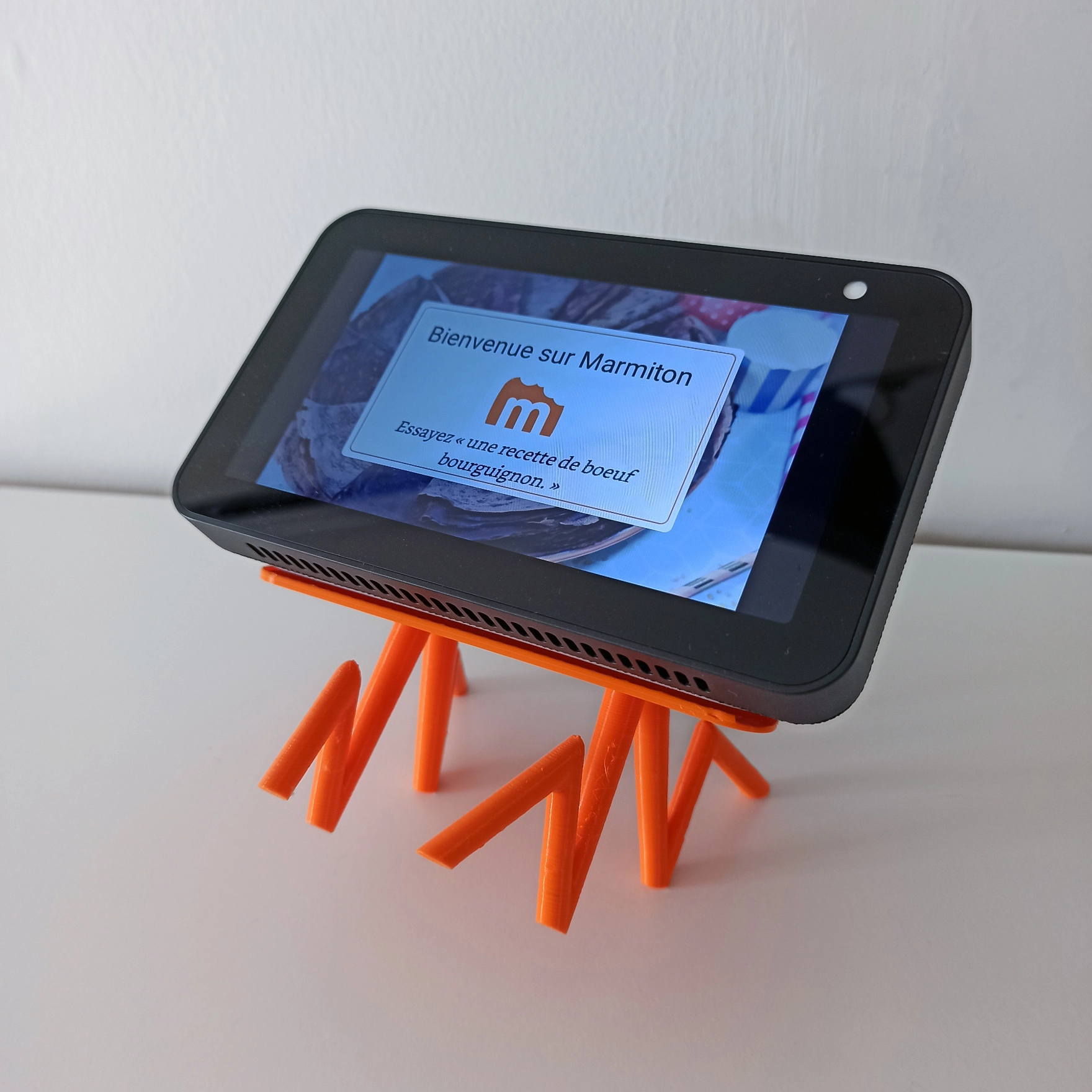 Support pour Amazon Echo Show 5 proposant trois positions inspiré du design des Arachnides* de Starship Troopers (toi Geek tu sais !)