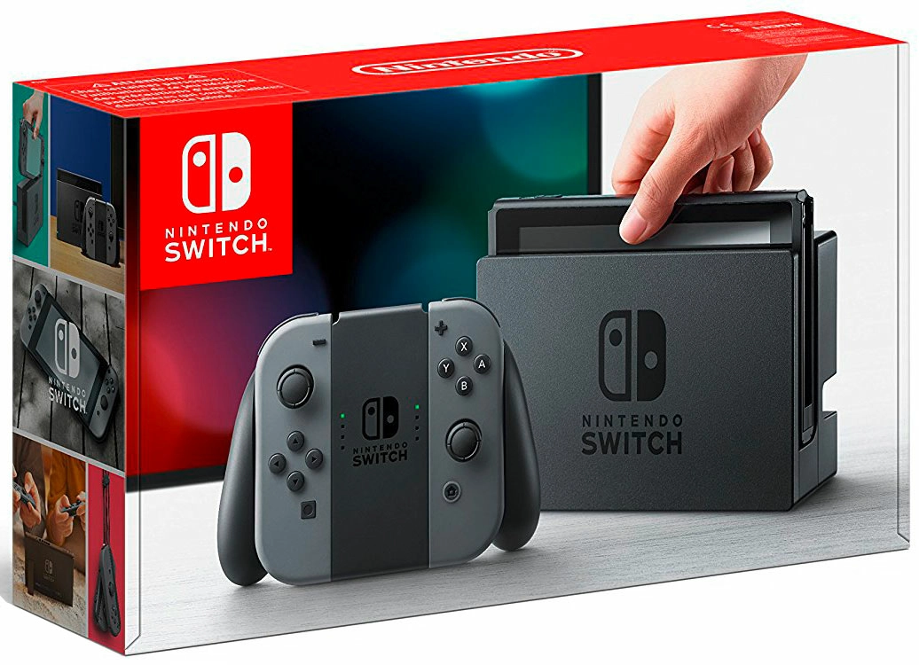 Cet ensemble comprend une console Nintendo Switch, une station d’accueil Nintendo Switch noire et des manettes Joy-Con (gauche et droite) de couleur grise. Cet ensemble comprend également tout le contenu nécessaire pour faire fonctionner la console.