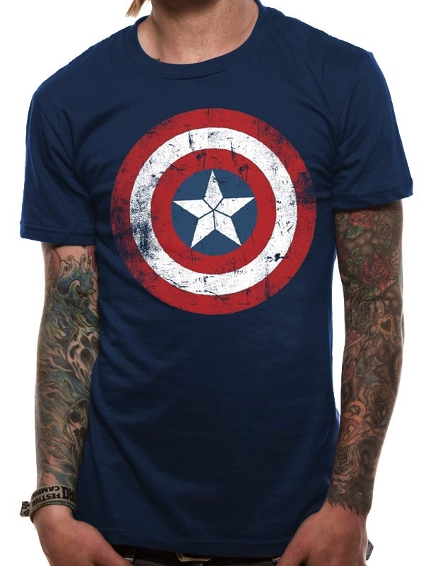 Découvrez T-Shirt Captain America : Logo Usé - S sur Référence Gaming.