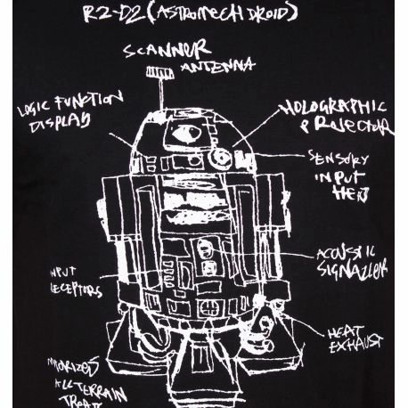 T-Shirt Star Wars 40 ans : R2D2 Croquis systeme - XXL