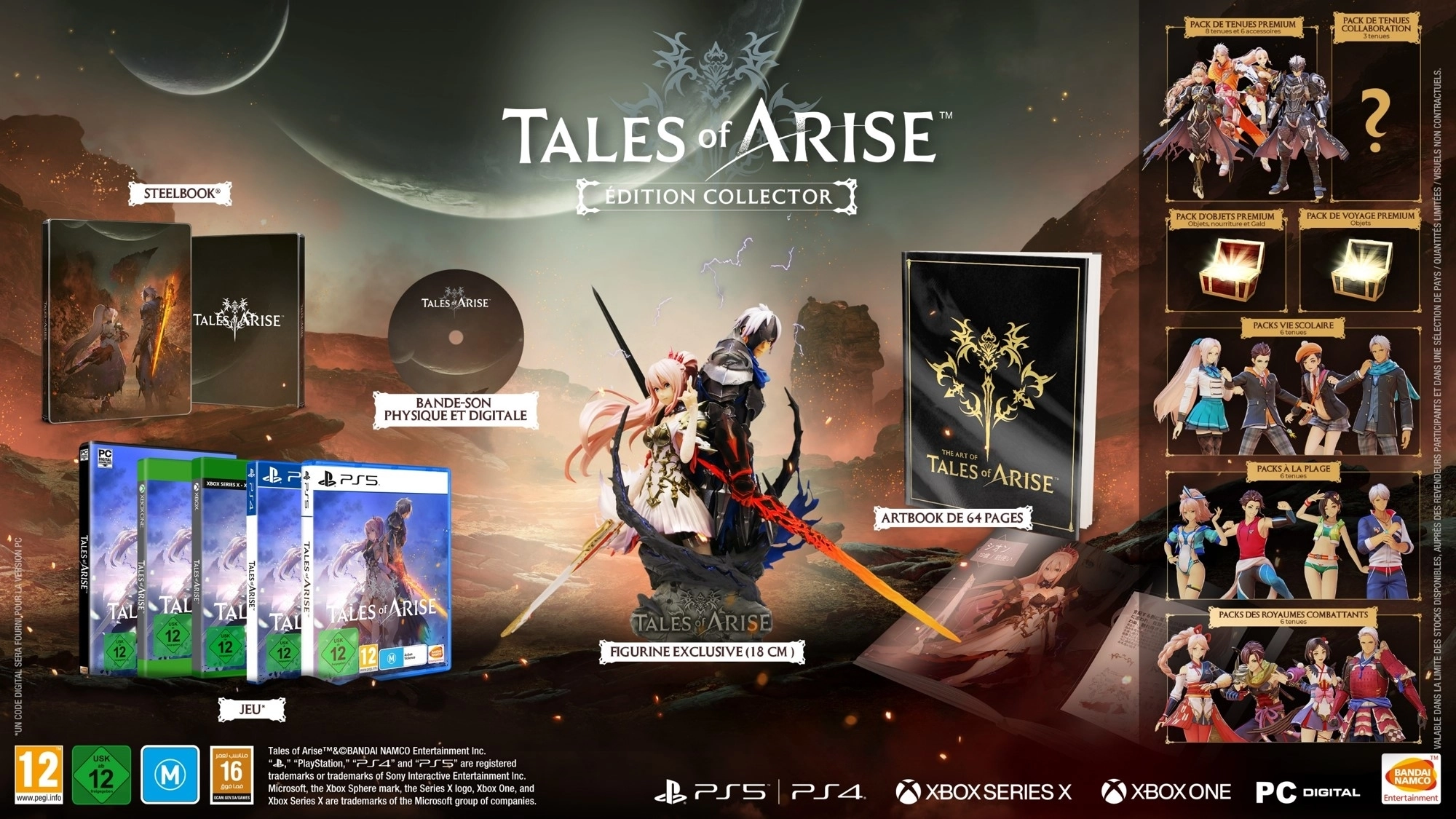 Contenu de l'Édition Collector :Jeu complet Tales of AriseFigurine exclusive de 18 cm représentant Alphen et ShionneArtbook de 64 pages... Lire plus