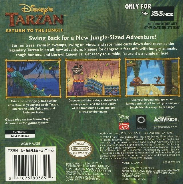 Tarzan L'Appel De La Jungle est un jeu d'action/plates-formes sur Game Boy Advance qui vous fait découvrir pas moins de 4 mondes chacun constitué de 5 stages avec de nombreux challenges différents.