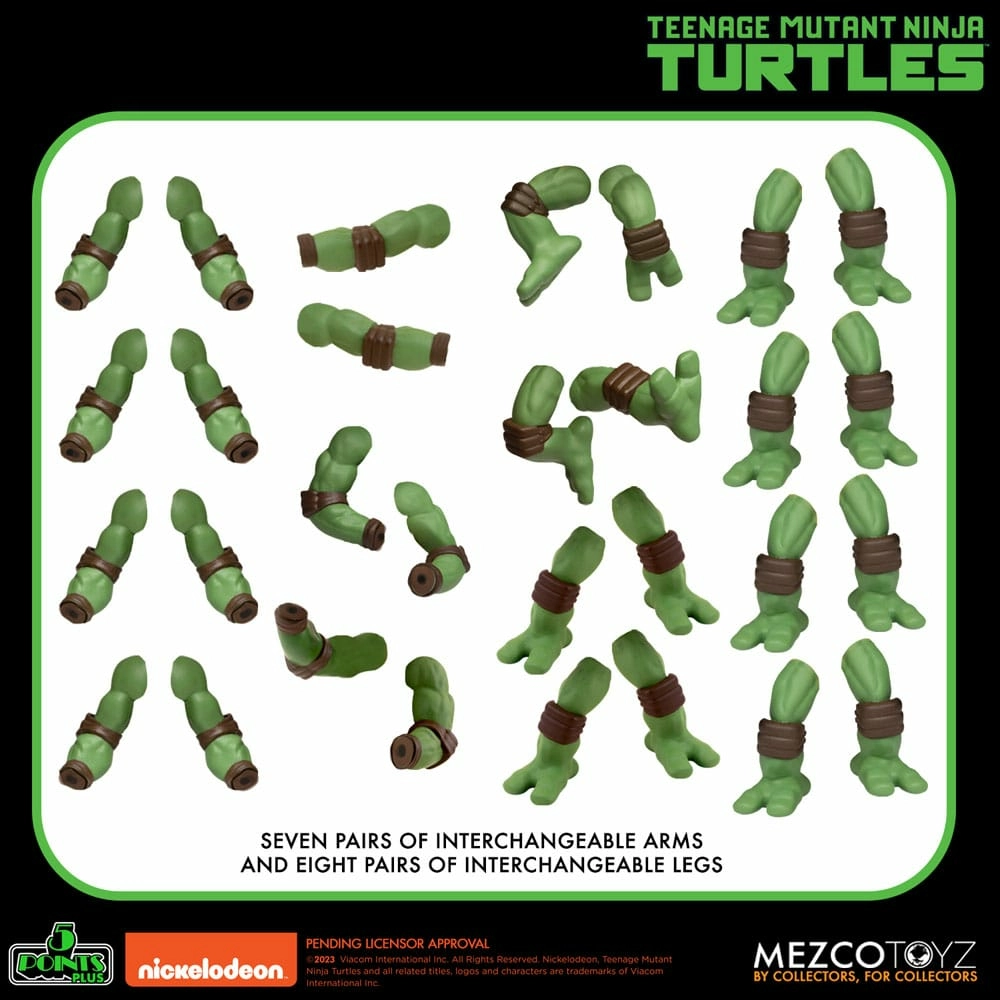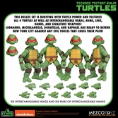 Figurines articulées taille env. 8 cm. Modèles livrés avec accessoires en emballage boîte-fenêtre de collection, fabriqués par Mezco.Contient:- Teenage Mutant Ninja Turtles- Accessories