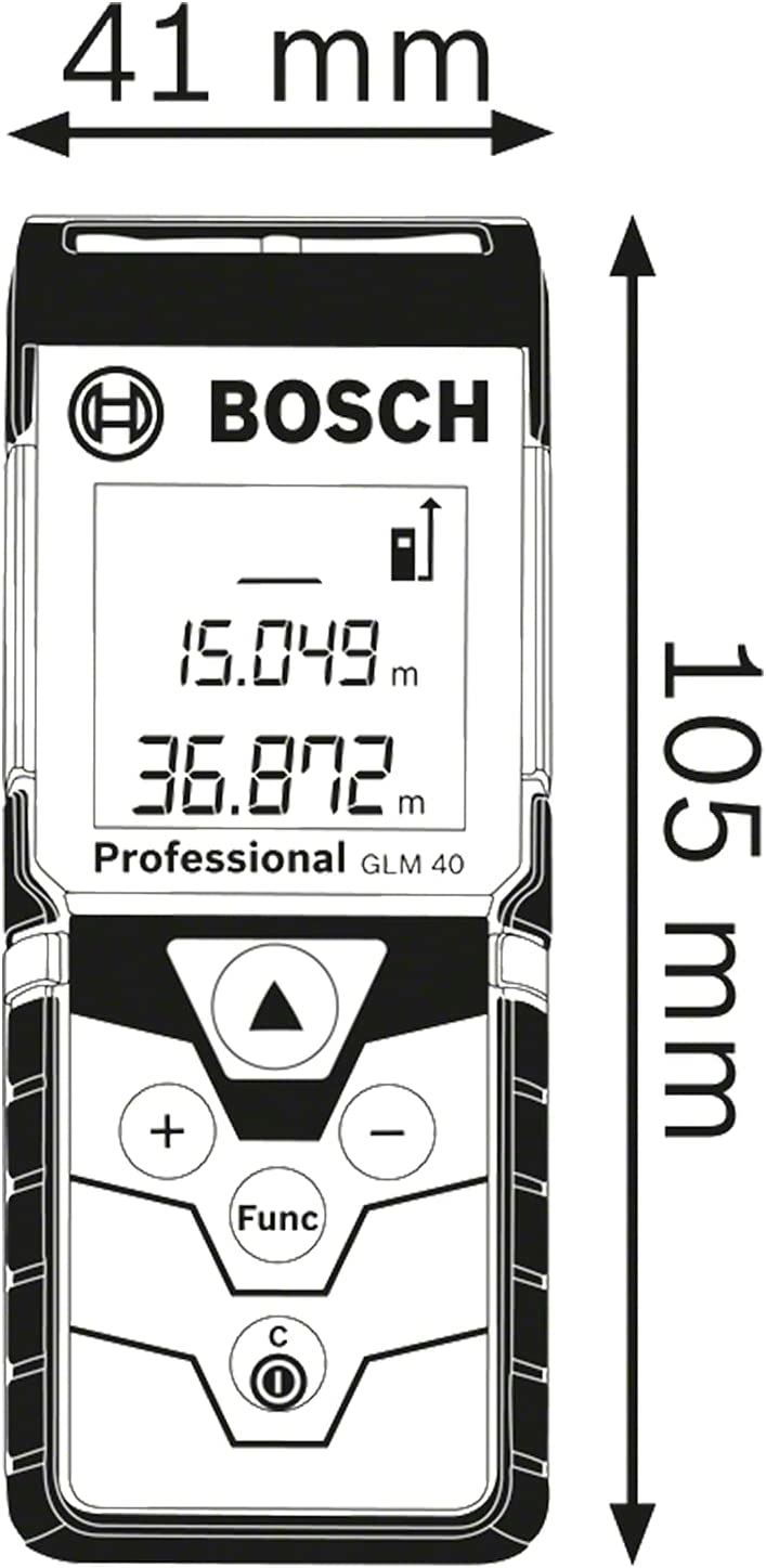 Le compteur de distance Bosch GLM 40 pour professionnels allie simplicité d’utilisation et grande compacité. Conçu pour être glissé dans une poche de pantalon ou de poitrine, il est toujours à portée de main.