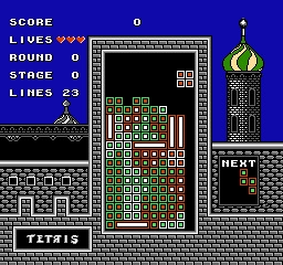 Tetris sur Nes est le célèbre puzzle-game dans lequel vous devez empiler des briques afin de constituer des lignes qui s'effaceront au fur et à mesure de votre progression. La difficulté augmente au fil de votre avancée. Cette version de Bullet-proof Software propose de réaliser 25 lignes à chaque niveau de jeux. Lorsque les lignes sont faites, le joueur passe au niveau suivant et la chute des pièces s'accélèrent.
