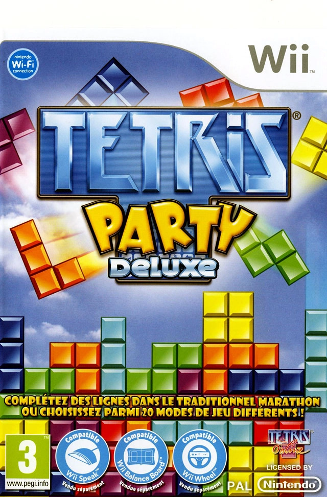 Tetris Party Deluxe sur Wii est une version ultra complète du fameux puzzle-game. Le principe consiste globalement à empiler des formes géométriques pour compléter des lignes et les voir disparaître mais plus de 20 modes de jeu sont ici disponibles pour varier les plaisirs seul ou à plusieurs. 130 récompenses sont aussi là pour encourager vos progrès.