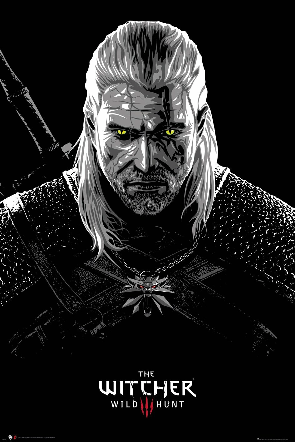 Poster sous licence officielle. Dimensions 61x91.5cm. The Witcher 3: Wild Hunt est un jeu vidéo de type action-RPG développé par le studio polonais CD Projekt RED. Sorti le 19 mai 2015 sur PC (Windows), PlayStation 4 et Xbox One, puis sur Nintendo Switch le 15 octobre 2019, il fait suite narrativement à The Witcher (2007) et The Witcher 2: Assassins of Kings (2011). Il est ainsi le troisième jeu vidéo à prendre place dans l'univers littéraire du Sorceleur, créé par l'écrivain polonais Andrzej Sapkowski, mais aussi le dernier à présenter les aventures de Geralt de Riv.
