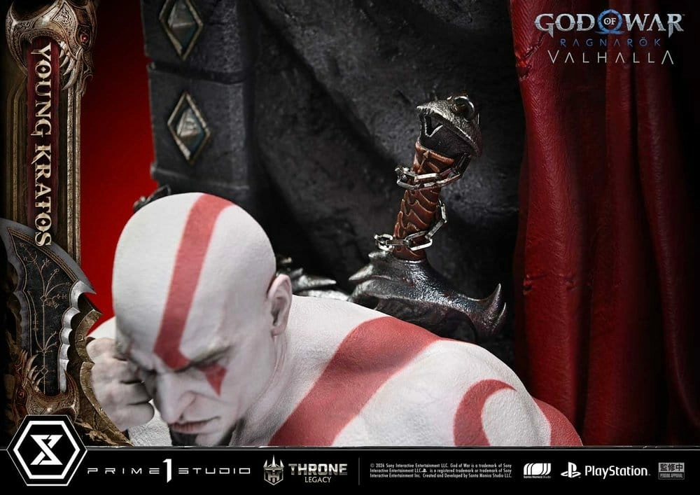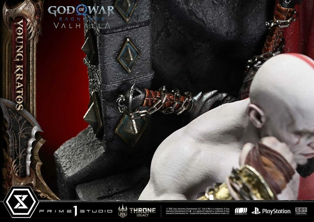 Throne legacy god of war series statuette 1/3 ragnarok young thyself kratos 91 cm