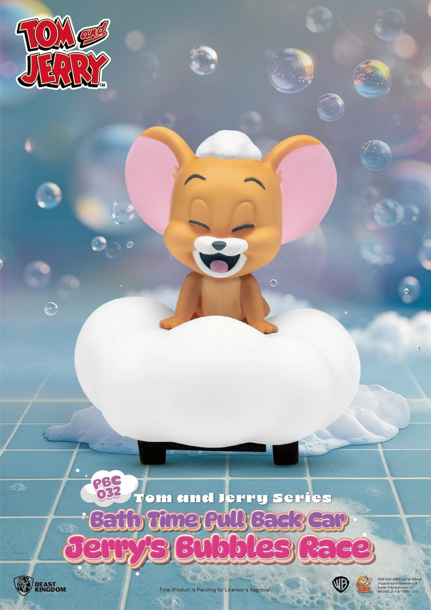 PBC-032 Tom & Jerry Bath Time Pull Back Car Blind Box Set (6 pièces)C'est l'heure du bain avec Tom & Jerry ! La plus mignonne des équipes de voitures à bulles est prête à rouler ! La célèbre série « Pull Back Car » de Beast Kingdom revient avec un tout nouveau thème inspiré des pitreries classiques de Tom et Jerry. Cette fois-ci, « Bath Time » apporte de la gaieté dans la salle de bain, transformant même l'heure du bain en une joyeuse aventure !Il suffit de tirer et de relâcher pour que les voitures foncent instantanément ! Que ce soit pour collectionner, photographier ou jouer avec des amis, vous vivrez un pur moment de plaisir et de joie.La série comprend 6 + 1 modèles :‧ Canard en caoutchouc‧ Prendre un bain‧ Savon de Jerry‧ Shampooing de Tom‧ Course de bulles de Jerry‧ Course de bulles de Tom‧ Édition cachée « Se baigner ensemble »Collectionnez toute la série Tom & Jerry Bath Time et ajoutez des rires et du plaisir sans fin à votre collection !