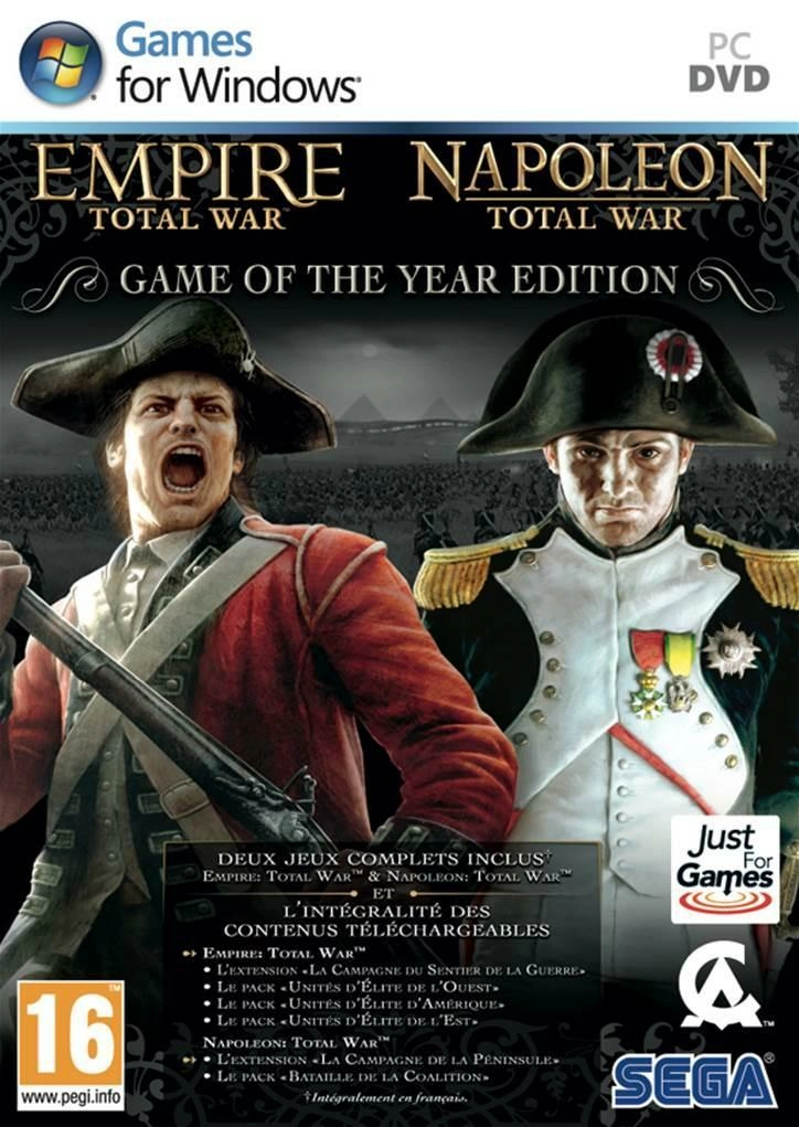 L'histoire européenne vous passionne, et vous appréciez de revivre, par le biais de vos jeux vidéo, les batailles équipes qui ont dessiné notre continent tel qu'il est aujourd'hui ? N'hésitez pas à commander le pack Empire Total War + Napoleon Total War GOTY, deux jeux vraiment captivants en un, dans lesquels vous pourrez mettre vos capacités en action, tout en incarnant des personnages historiques, qui ont compté dans l'histoire de France, et qui ont fondé notre pays tel que nous le connaissons de nos jours. Ce jeu PC a tout pour vous intéresser, et sachant qu'il est en deux parties, le divertissement sera sans fin ou presque.