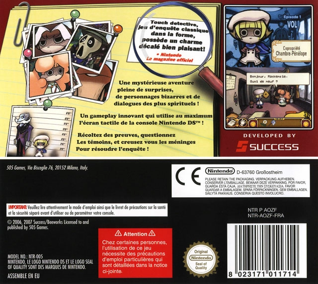 Touch Detective est un jeu d'aventure sur Nintendo DS. Vous y incarnez la jeune Mackenzie, espèce de Sherlock Holmes en herbe, qui doit enquêter sur quatre histoires différentes. Le titre est entièrement jouable au stylet, et vous amène dans six lieux différents pour mener vos investigations. A vous de prouver que Mackenzie a la tête de l'emploi.