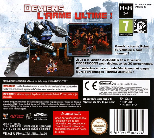 Les gigantesques robots de l'espace reviennent sur nos consoles de jeu. Cette fois c'est la sinistre guerre sur Cybertron qui est à l'honneur. Sur Nintendo DS.