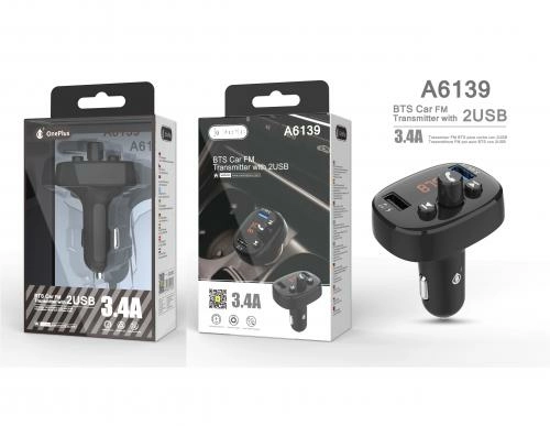 Transmetteur fm bluetooth avec micro - 2 ports usb - 3,4a - noir