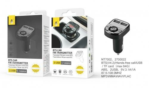 Transmetteur fm bluetooth avec micro et ecran led - 2 ports usb - 3,1a - nt7002 - noir