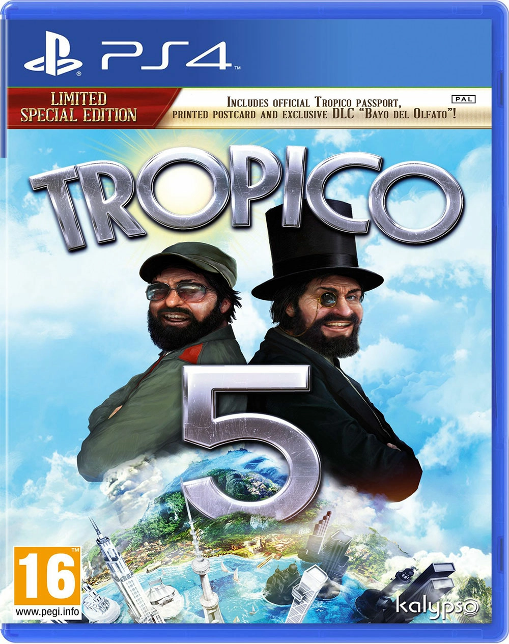 Tropico 5 est un jeu de gestion sur PS4. A la tête d'une république bananière, vous pouvez choisir votre politique afin d'assurer l'essor de votre nation. Ce nouvel opus offre un mode multijoueur compétitif jusqu'à quatre joueurs devant construire des villes sur une même île ainsi qu'apporter des améliorations sur les systèmes d'échange ou de recherche déjà existants.