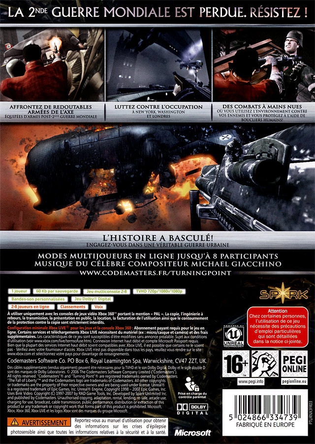 Turning Point Fall Of Liberty sur Xbox 360 est un jeu de tir à la première personne dont l'action se déroule dans un passé alternatif, un passé qui voit les Etats-Unis envahis par l'Allemagne nazie.