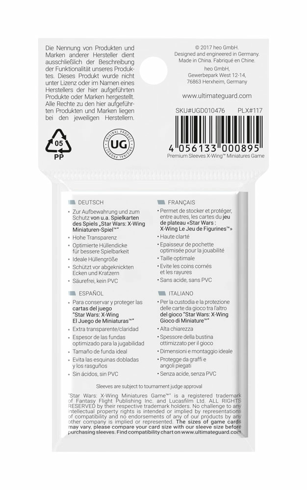 Ultimate guard 50 pochettes premium soft sleeves jeux de plateau star wars™ x-wing™ miniatures game