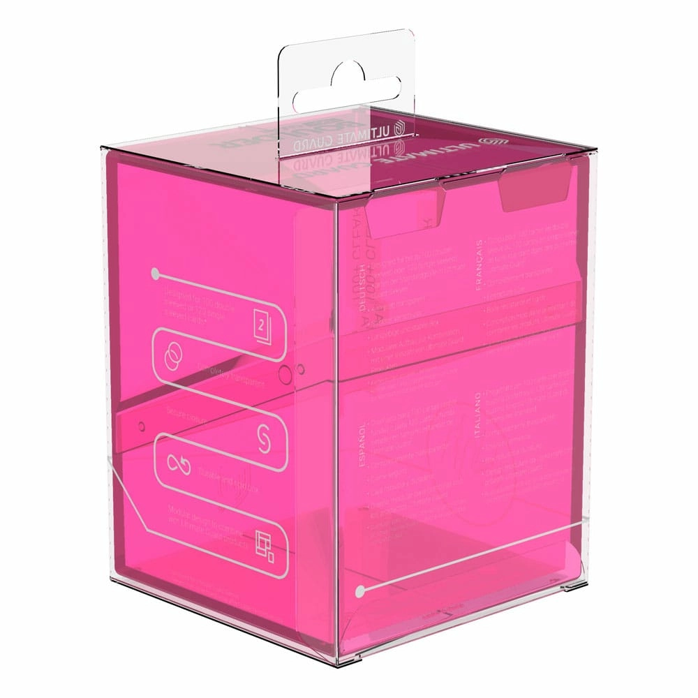 La légende est de retour dans un nouveau design : avec le Boulder 100+ Clear, vous pouvez toujours voir quelles cartes se trouvent dans votre deck box. Le Boulder 100+ Clear est une boîte résistante et fiable avec une fermeture sûre. Elle peut contenir jusqu'à 100 (double-sleeved) ou 120 (single-sleeved) cartes de tous les jeux de cartes à collectionner courants comme Magic: The Gathering, Pokémon, Lorcana, One Piece ou Yu-Gi-Oh!Complètement transparentFermeture sûre .Boîte résistante et rigideConception modulaire permettant de combiner les produits Ultimate Guard .