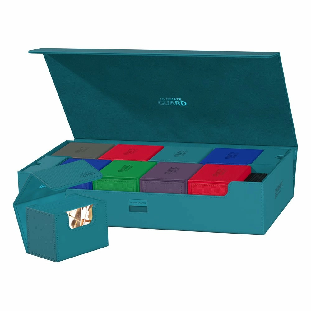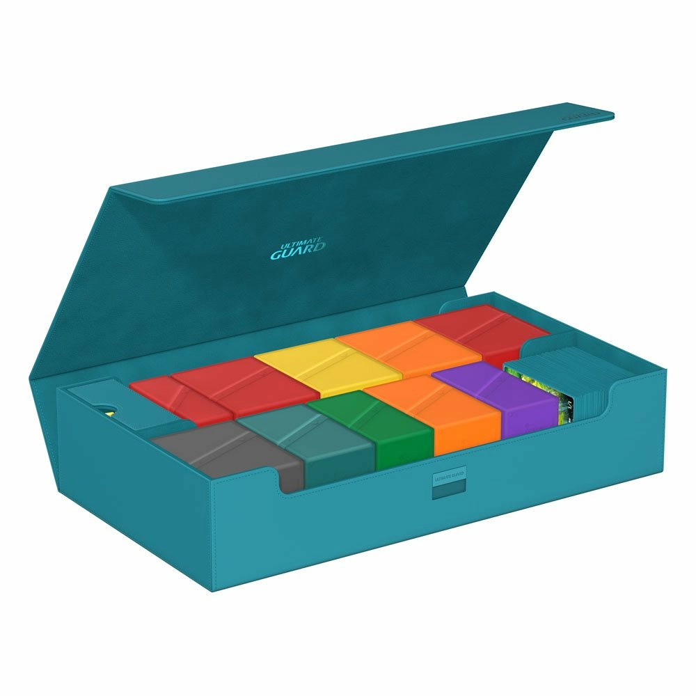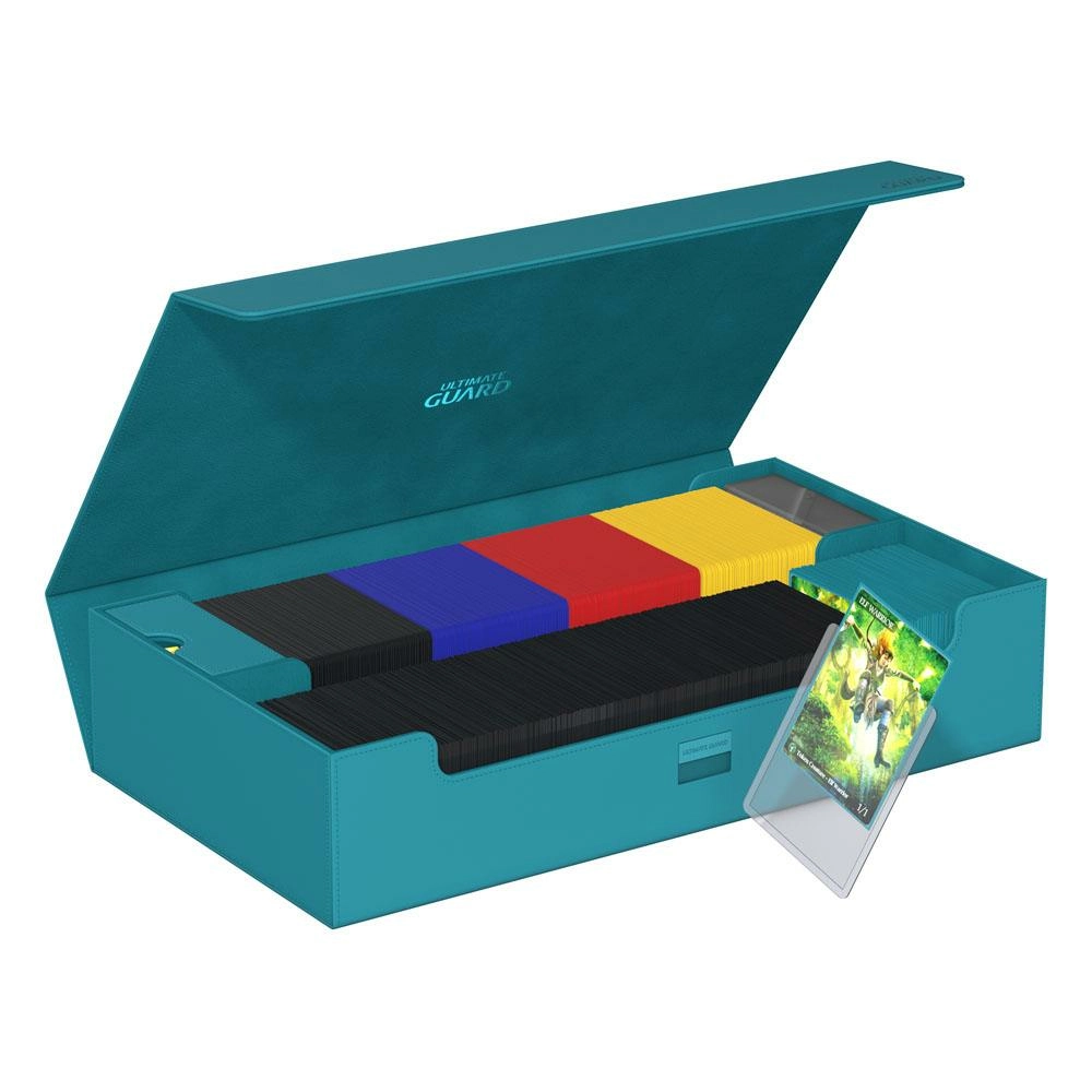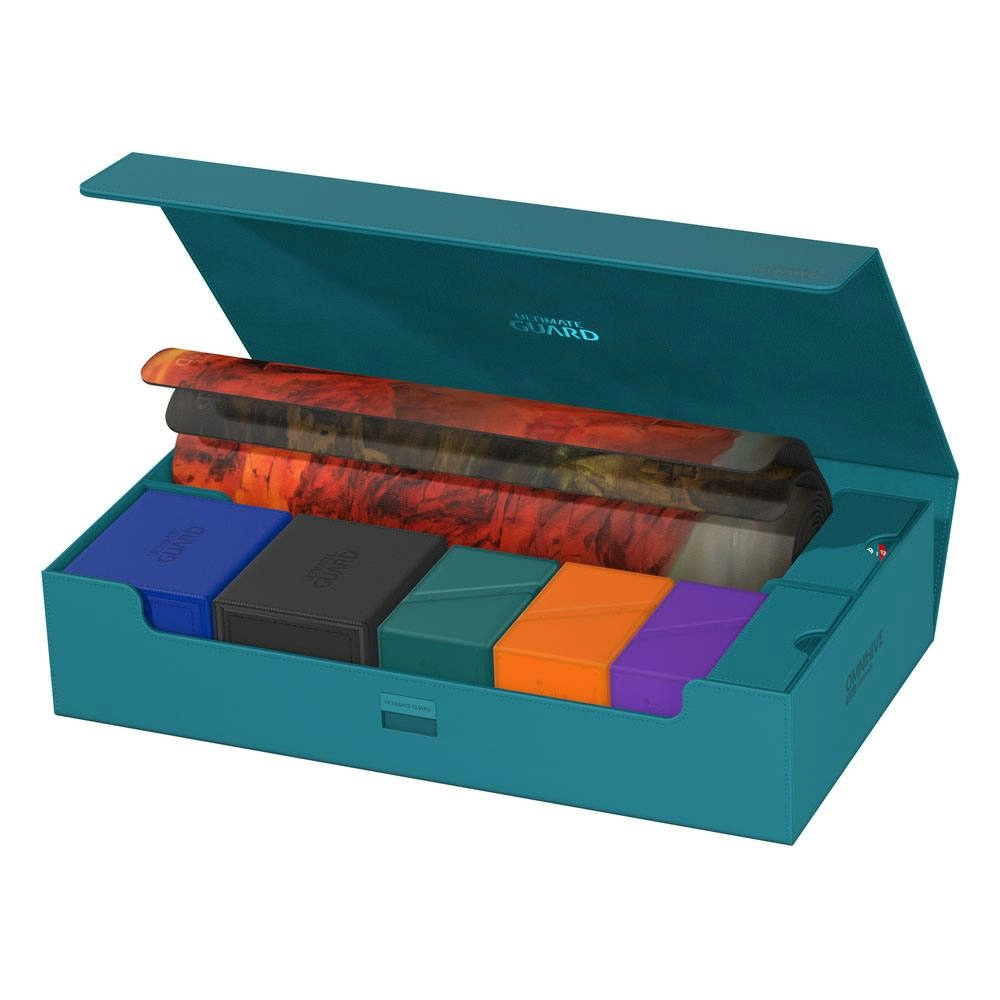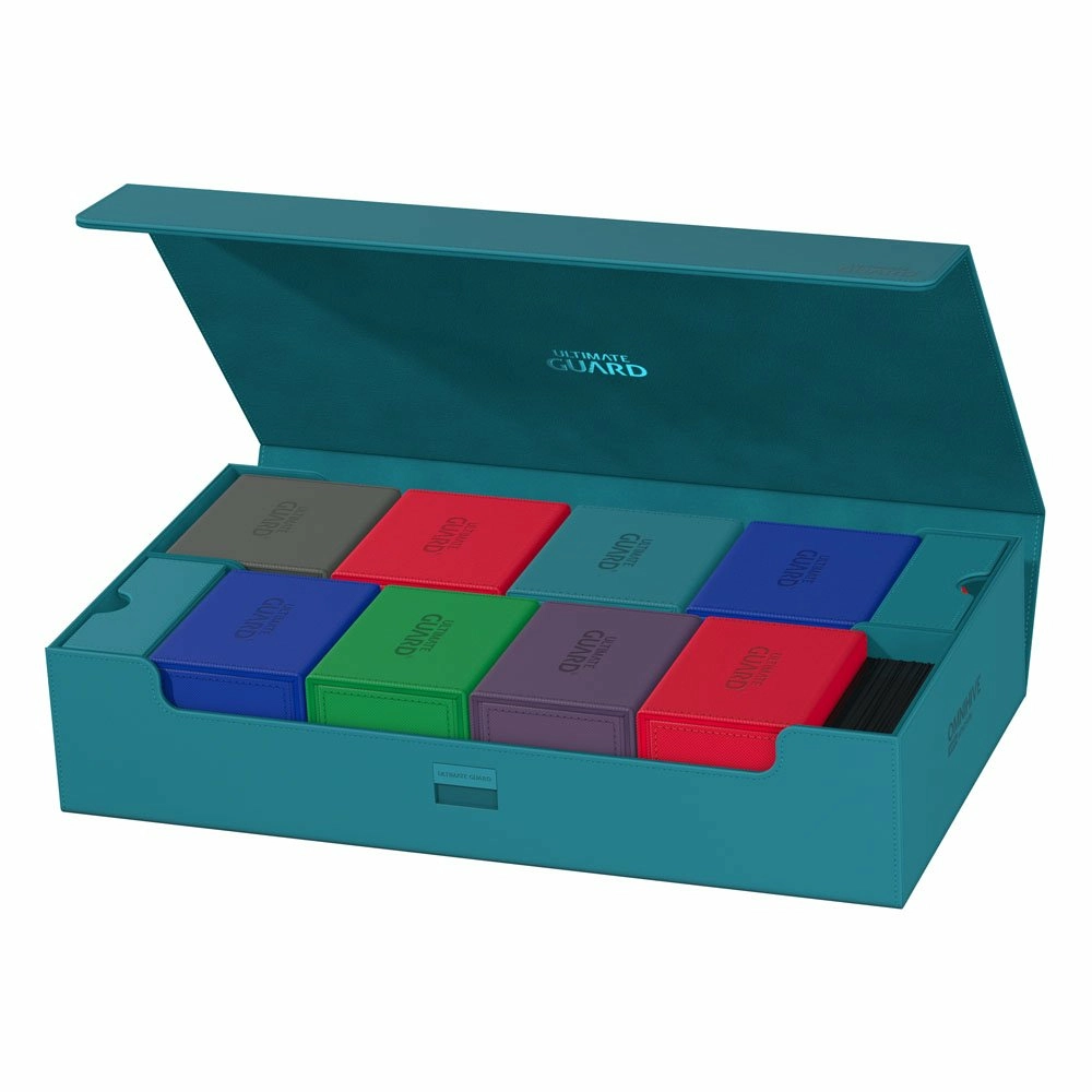 La méga boîte pour ranger votre collection complète de manière aussi flexible que vous le souhaitez !Découvrez la nouvelle Omnihive 1000+ ! L'ultime boîte spacieuse et flexible pour le stockage de grandes collections. Cette boîte peut contenir plus de 1000 cartes en double-sleeve ou transporter plusieurs decks et/ou Play-Mats ainsi que d'autres produits Ultimate Guard comme le Sidewinder 133+. Deux tiroirs amovibles, magnétiques, ajustables et empilables rendent cette boîte unique : elle s'adapte à tous les types de jeux et de formats, et permet de stocker et d'utiliser votre collection de multiples façons différentes. Features : - Conçu pour plus de 1000 cartes en double-sleeve ou plus de 1250 cartes en simple sleeve de format standard dans des pochettes Ultimate Guard*- Conception modulaire permettant de combiner les produits Ultimate Guard- Deux tiroirs magnétiques pour un positionnement et un stockage flexibles des accessoires ou des cartes en double-sleeve- Convient pour le cubing et d'autres formats comme Commander/EDH**. - Pratique pour transporter plusieurs decks, dés et/ou tapis de jeu- Accès facile- Matériau Xenoskin résistant- Design monocolore avec doublure intérieure en microfibre de qualité- Fermeture magnétique puissante avec mécanisme de verrouillage supplémentaire ZnapClawDimensions env. : 238 x 92 x 407 mm* Conçu pour les pochettes Ultimate Guard. Les pochettes d'autres marques peuvent affecter la capacité/compatibilité** "Magic : The Gathering™" et "Magic : The Gathering Commander™" sont des marques déposées de Wizards of the Coast.