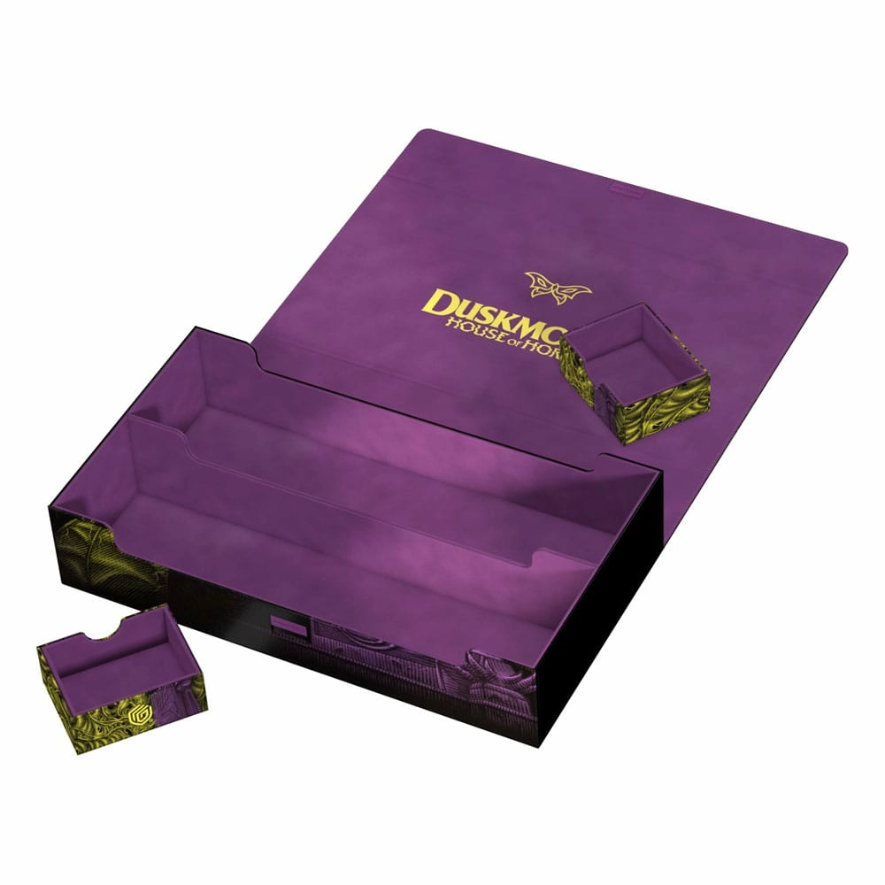 L'Omnihive 1000+ Xenoskin de la série Bloomurrow capture tout le charme du nouveau monde féerique de Magic: The Gathering : Avec une illustration sous licence officielle, l'époustouflante Omnihive est conçue pour accueillir simultanément plusieurs deck boxes, dés et/ou Play-Mats grâce à deux tiroirs magnétiques positionnés de manière flexible. L'Omnihive, fabriquée en Xenoskin, est également le choix idéal pour ranger une grande collection de cartes individuelles (jusqu'à 1000 cartes en double-sleeve) ou un cube. Les éléments de l'oeuvre d'art se reflètent également sur l'élégante doublure intérieure en microfibre, tandis qu'une fermeture magnétique solide avec un mécanisme ZnapClaw supplémentaire garantit que les cartes et les decks sont en sécurité à l'intérieur de la boîte.Conçu pour 1000 cartes en double-sleeve ou 1250 cartes en simple sleeve de taille standard dans des pochettes Ultimate GuardPratique pour transporter plusieurs decks, dés et/ou tapis de jeuDeux tiroirs magnétiques pour un positionnement et un stockage flexibles des accessoires ou des cartes en double-sleeveMatériau Xenoskin résistant et doublure intérieure en microfibre de qualitéFermeture magnétique puissante avec mécanisme de verrouillage supplémentaire ZnapClawIllustration sous licence officielle de Magic: The GatheringDimensions : 407 × 238 × 92 mmDesigned for 1000 double-sleeved or 1250 single-sleeved cards in Ultimate Guard SleevesConvenient for carrying multiple decks, dice, and/or Play-MatsTwo magnetic trays for flexible positioning and storing of accessories or double-sleeved cardsResistant Xenoskin material and quality microfiber inner liningStrong magnetic closure with additional ZnapClaw locking mechanismOfficially licensed Magic: The Gathering artworkDimensions: 407 × 238 × 92 mm