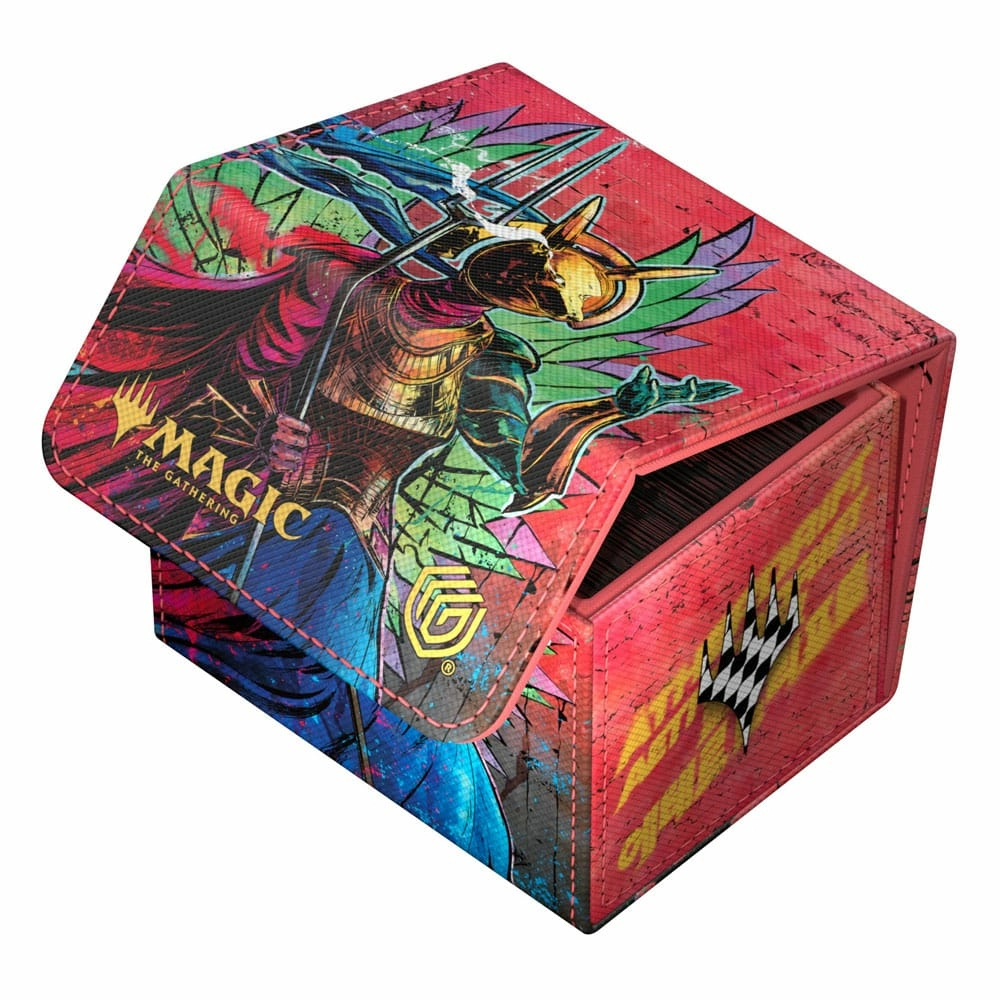 Le Sidewinder 100+, fabriqué en Xenoskin résistant, peut contenir jusqu'à 100 cartes (double-sleeve) ou 120 cartes (simple sleeve). C'est la boîte pour deck idéale pour les jeux Commander/EDH. Imprimées en couleur avec les illustrations de Aetherdrift sous licence officielle de Magic: The Gathering, les boîtes pour deck Sidewinder d'Ultimate Guard, avec leur fermeture magnétique solide et leur doublure intérieure en microfibre de qualité, sont un lieu de stockage sûr et fiable pour les decks MTG et les cartes à collectionner individuelles.Holds up to 100 double-sleeved or 120+ single-sleeved cards, standard sizeInnovative XenoSkin material with anti-slip texturePremium microfibre inner liningThe anti-slip characteristics of the microfibre inner lining makes the fully opened lid card stack readyWhen fully opened, the 3-fold lid leaves the box open to both sides for an easy extraction of the deck4 magnets for a precise and robust closureSize: approx. 79 x 104 x 88 mm .