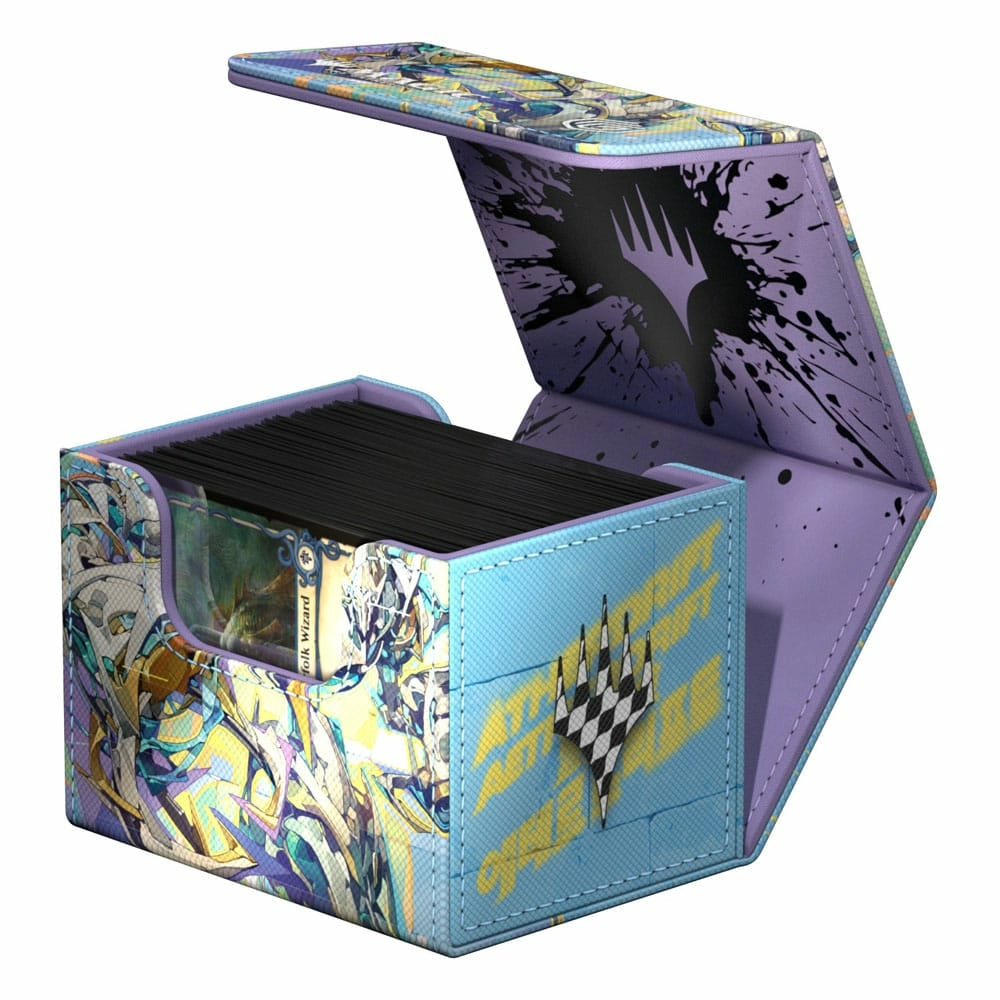 Le Sidewinder 100+, fabriqué en Xenoskin résistant, peut contenir jusqu'à 100 cartes (double-sleeve) ou 120 cartes (simple sleeve). C'est la boîte pour deck idéale pour les jeux Commander/EDH. Imprimées en couleur avec les illustrations de Aetherdrift sous licence officielle de Magic: The Gathering, les boîtes pour deck Sidewinder d'Ultimate Guard, avec leur fermeture magnétique solide et leur doublure intérieure en microfibre de qualité, sont un lieu de stockage sûr et fiable pour les decks MTG et les cartes à collectionner individuelles.Holds up to 100 double-sleeved or 120+ single-sleeved cards, standard sizeInnovative XenoSkin material with anti-slip texturePremium microfibre inner liningThe anti-slip characteristics of the microfibre inner lining makes the fully opened lid card stack readyWhen fully opened, the 3-fold lid leaves the box open to both sides for an easy extraction of the deck4 magnets for a precise and robust closureSize: approx. 79 x 104 x 88 mm .