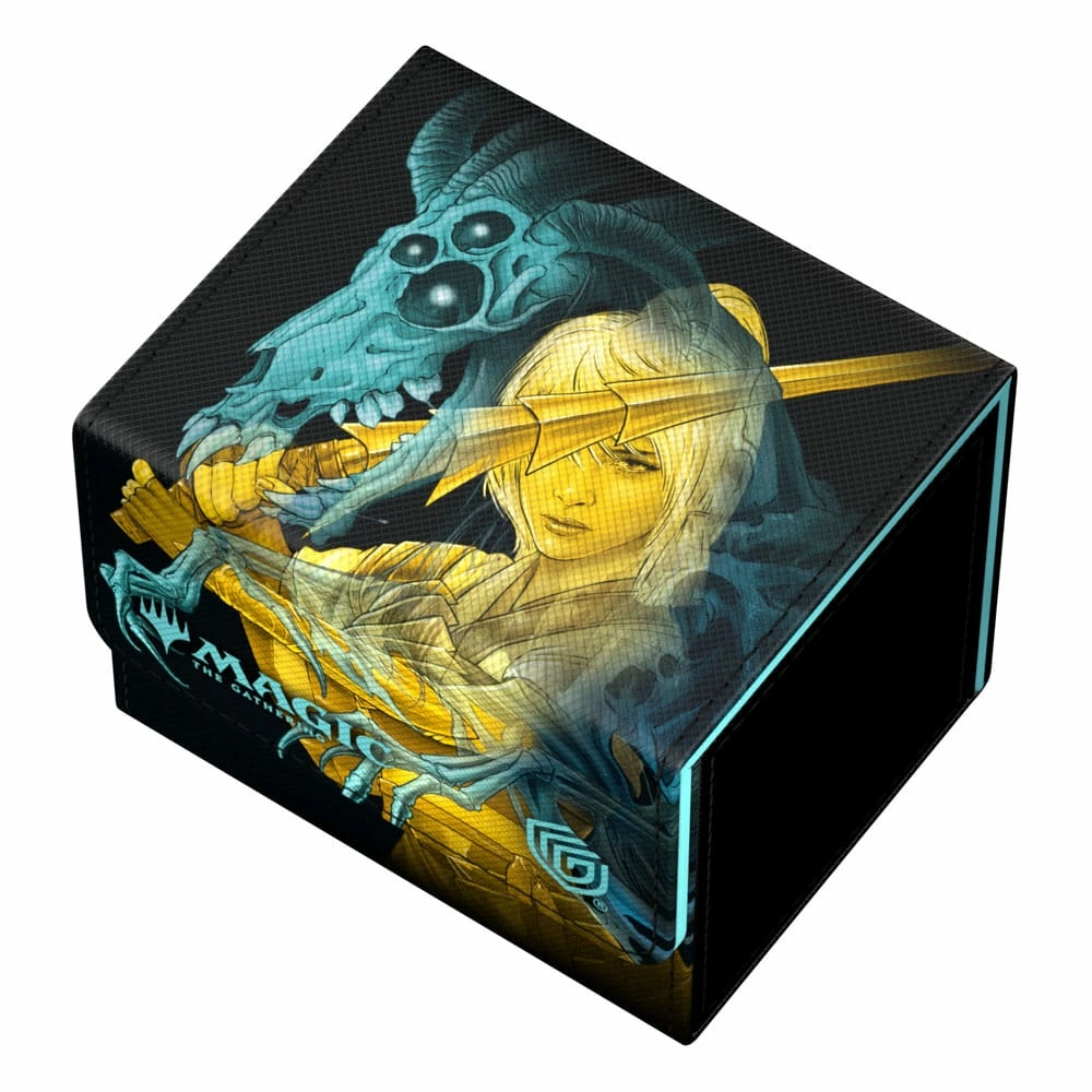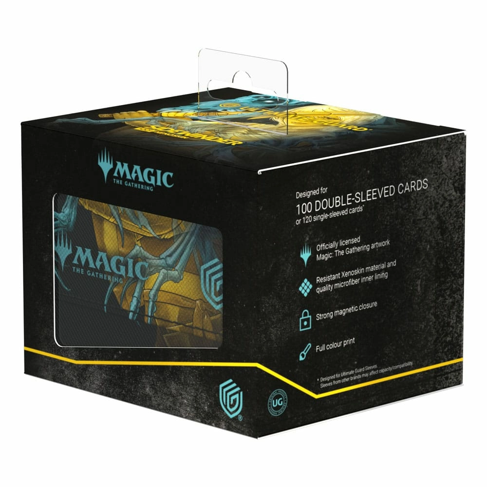 Explorez le côté féroce de Bloomburrow ! Nos Sidewinder 100+ sont fabriqués en Xenoskin résistant et imprimé en couleur et présentent des illustrations sous licence officielle de Magic: The Gathering représentant les épiques Bêtes calamiteuses de Bloomburrow dans le style "observations de terrain sans bordure". Les deck boxes peuvent contenir jusqu'à 100 (double-sleeve) ou 120 (single-sleeve) cartes et sont le choix idéal pour ranger en toute sécurité les cartes et les decks de tous les TCG populaires grâce à une fermeture magnétique solide et à une doublure intérieure en microfibres.Conçu pour 100 cartes en double-sleeve ou 120 cartes en simple sleeve de taille standard dans des pochettes Ultimate GuardMatériau Xenoskin résistant et doublure intérieure en microfibre de qualitéFermeture magnétiqueImpression couleurIllustration sous licence officielle de Magic: The GatheringDimensions : 104 × 88 × 78 mmDesigned for 100 double-sleeved or 120 single-sleeved cards in Ultimate Guard SleevesResistant Xenoskin material and quality microfiber inner liningStrong magnetic closureFull colour printOfficially licensed Magic: The Gathering artworkDimensions: 104 × 88 × 78 mm