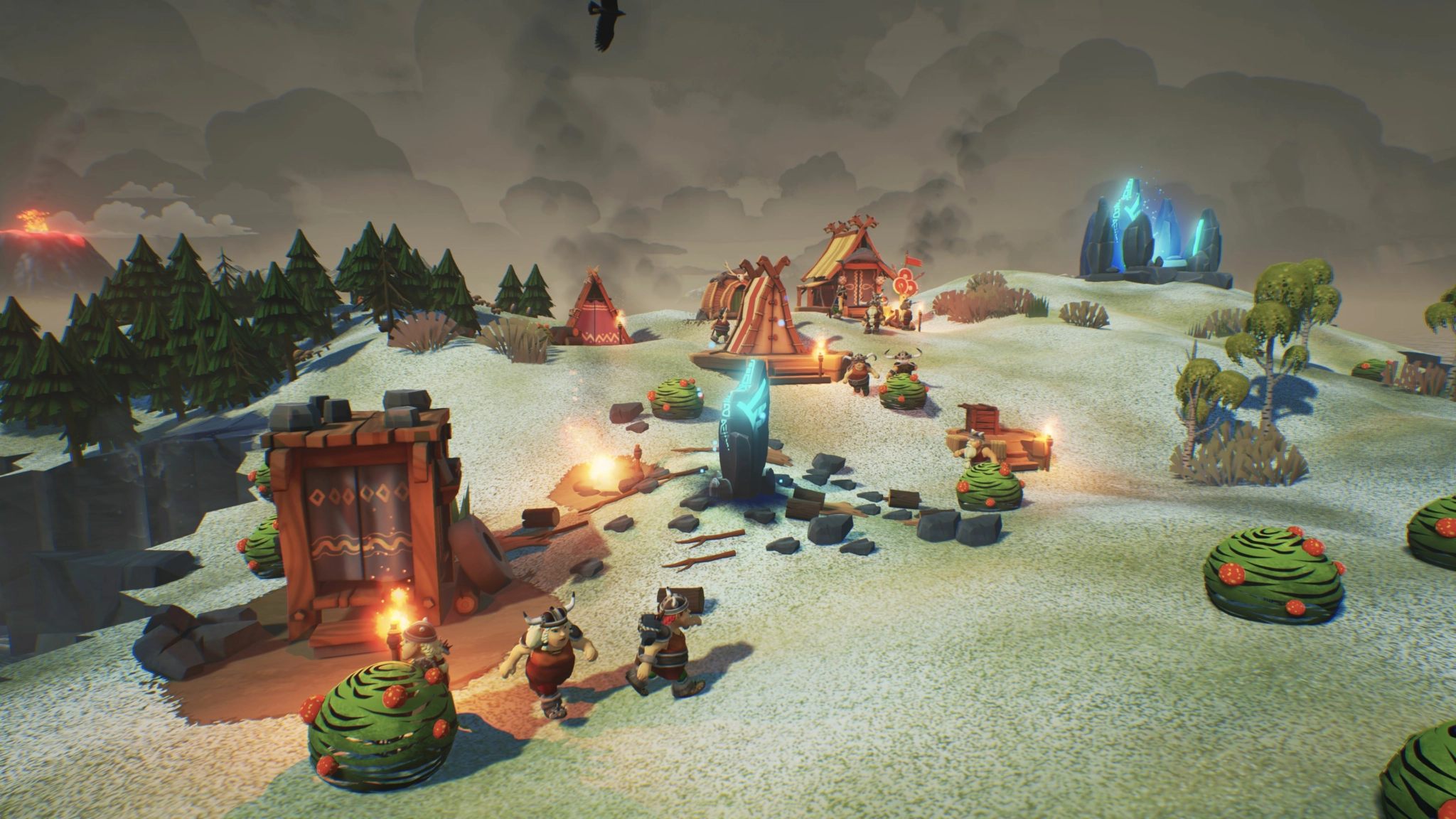Cela dit, un vrai Viking n’abandonne jamais. Si on ne peut pas entrer au Valhalla par la méthode traditionnelle, pourquoi ne pas simplement y aller à pied ? Seulement, les Vikings, d’ordinaire assez robustes, semblent ne pas très bien s’adapter aux défis et aux dangers que posent la montagne. Prenez soin de vos Vikings, allez chercher de la nourriture, coupez du bois et veillez au bien-être de votre population certes modeste, mais en pleine expansion. Réussissez à atteindre le portail au sommet de la colline, c’est la seule chance pour que vos Vikings se rapprochent de leur récompense bien méritée.