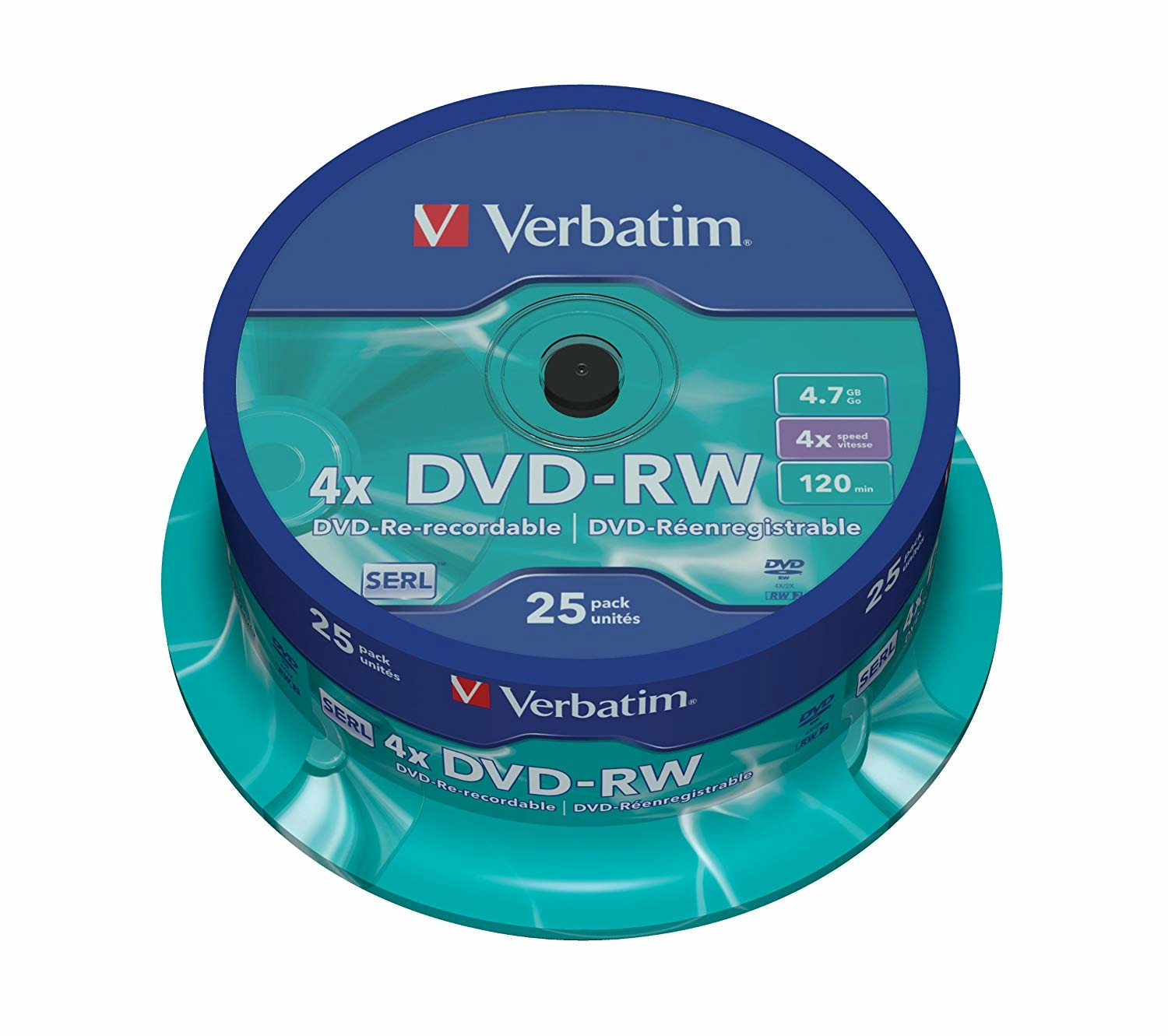 Verbatim DVD-RW 4.7 Go (120 Minutes) 4x : Argent Mat - Spindle de 25