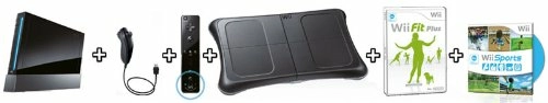 Le pack Console Wii noire + Wii Fit Plus contient :