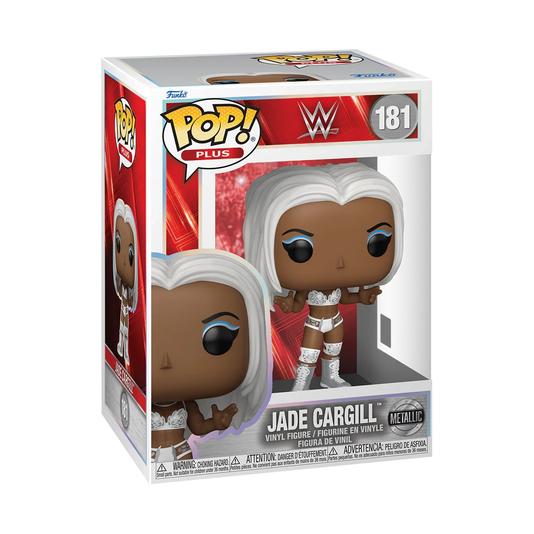 POP ! Plus Jade Cargill™ est là pour faire une grande entrée ! Faites monter cette superstar métallique sur le ring pour qu'elle fasse le show dans votre collection WWE™ ! Qui défiera-t-elle ensuite ?