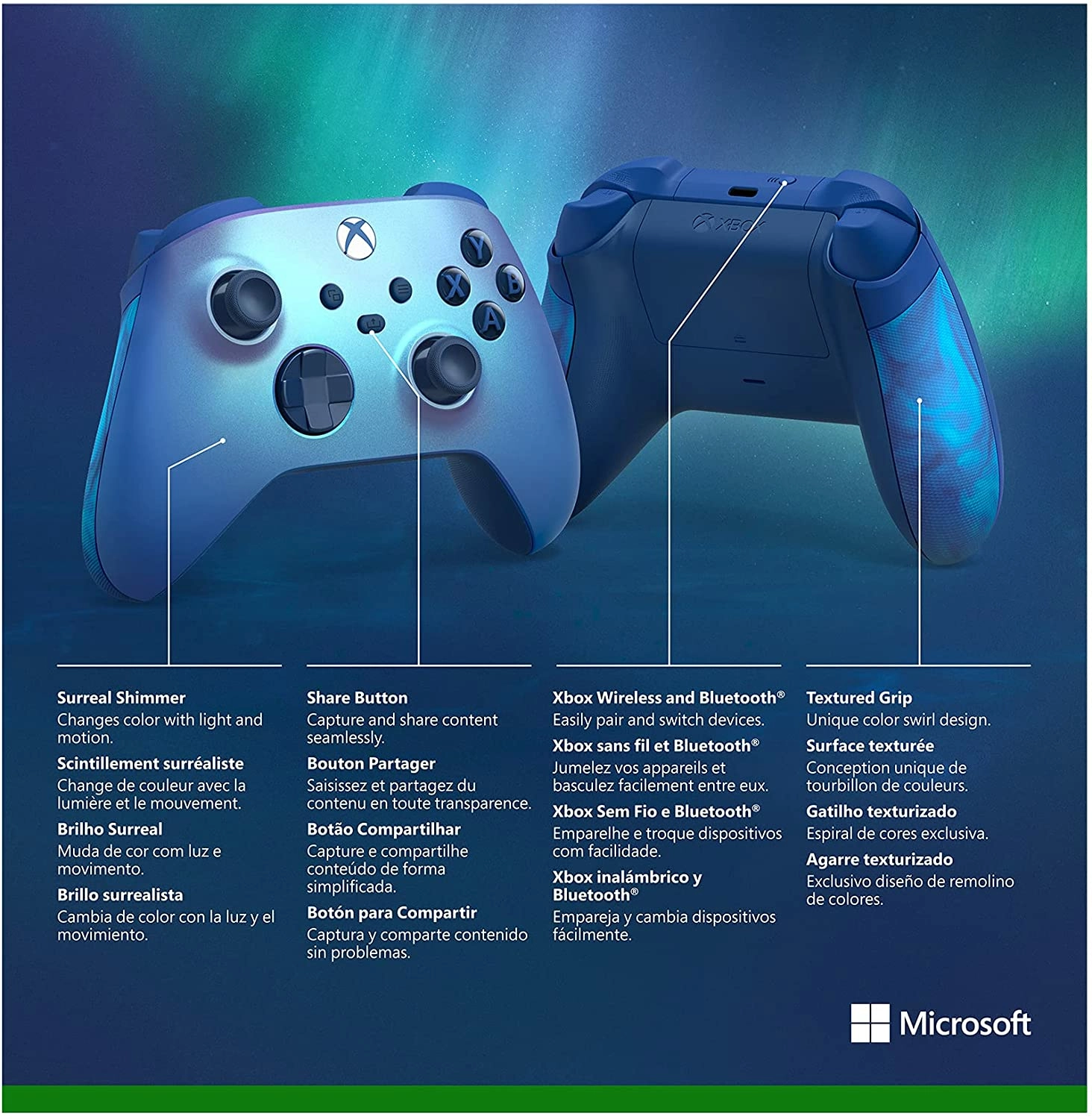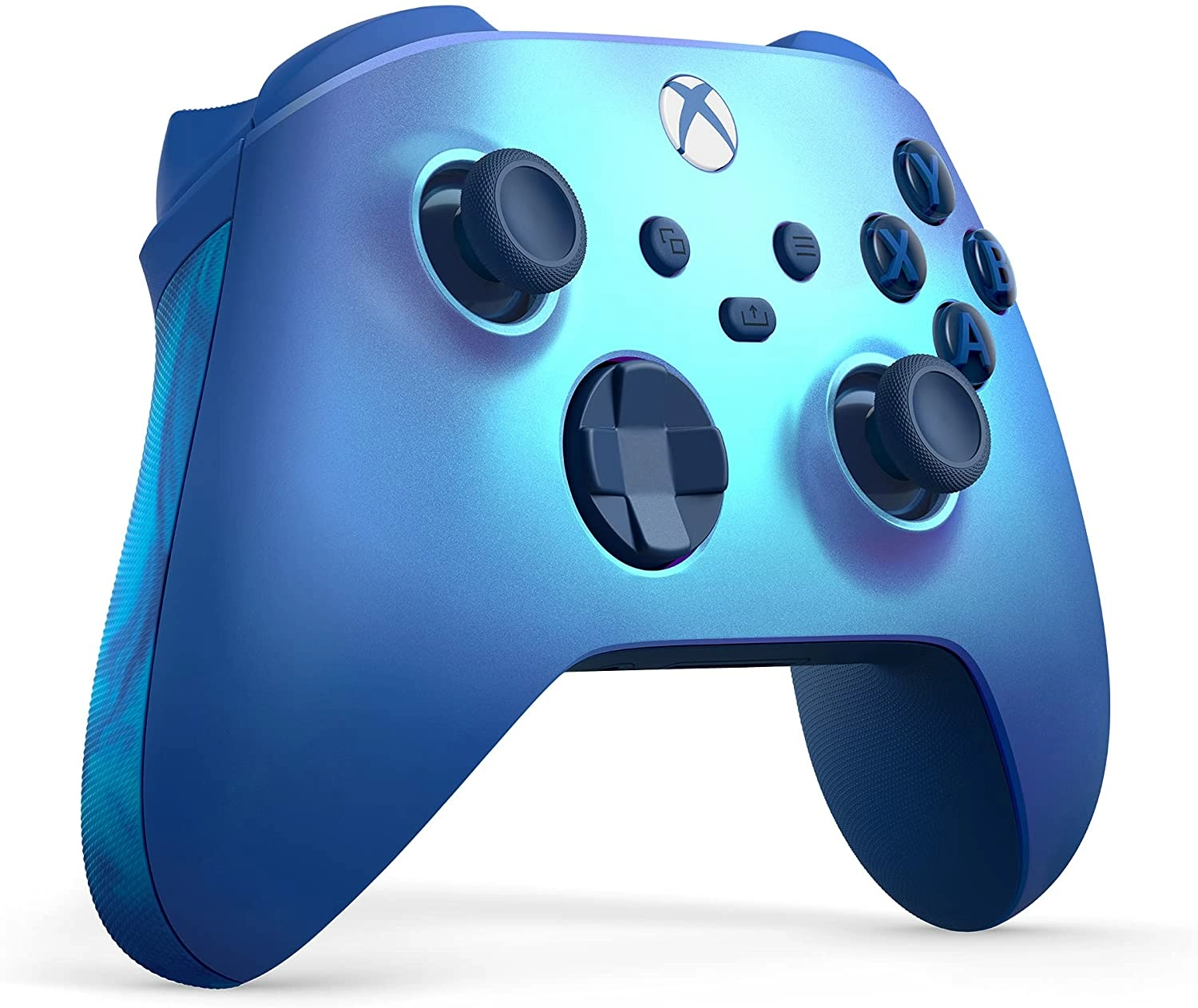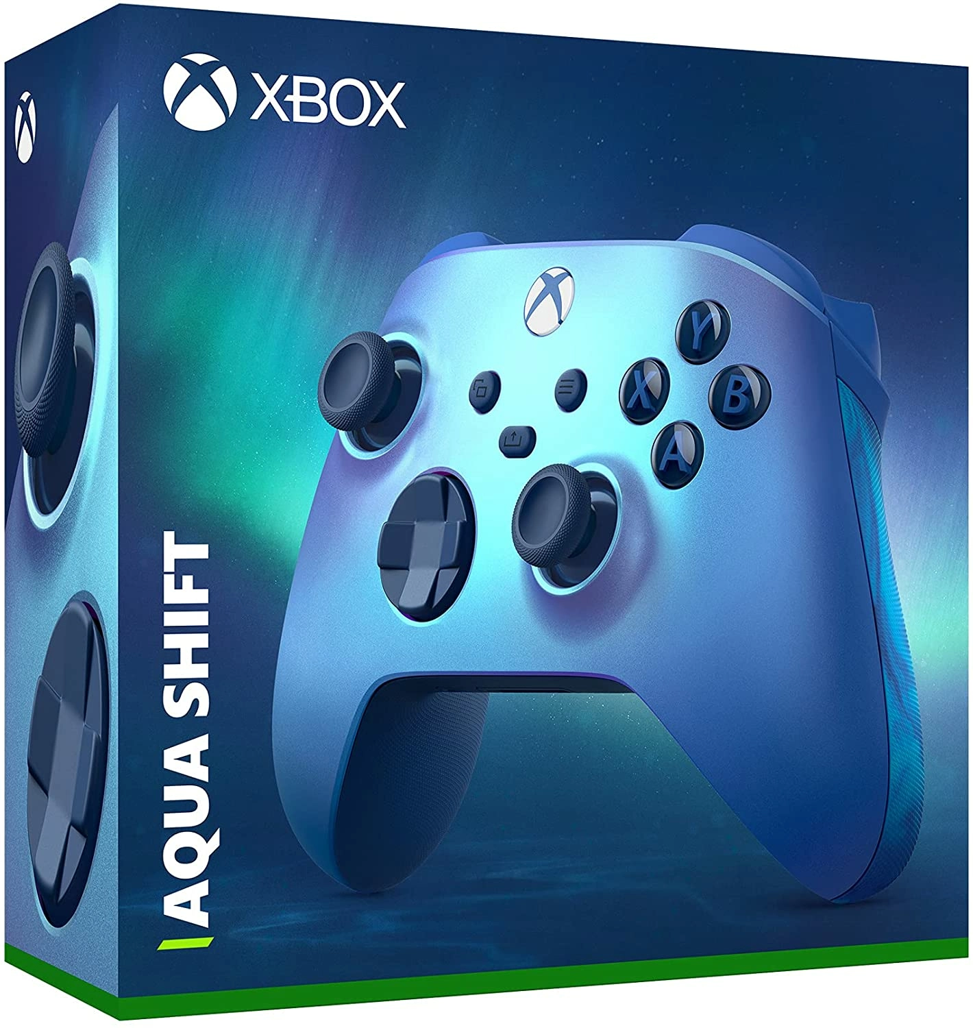 Découvrez la nouvelle génération de Manette Xbox sans Fil - Aqua Shift intégrant un port jack de 3.5mm pour micro-casque, la technologie Bluetooth et un nouveau grip texturé pour un meilleur maintien.